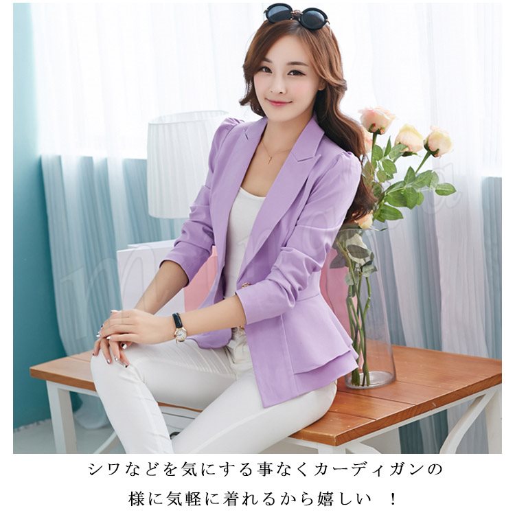 | 女らしい洗練された大人の美人シルエットジャケットです。 深めのVゾーンで縦のラインを強調し、すっきりとしたシルエットに見せてくれます♪ シワなどを気にする事なくカーディガンの様に気軽に着れるから嬉しい ! 裾フリル2段になったティアード風もフェミニンな雰囲気です。 シンプルで派手すぎないパステルカラーで普段着にも◎ 今年らしいカラーを加えた色展開で旬なコーディネートにも。 程よく抜け感もあるので仕事以外にもイベントやカジュアルコーデにも着回しできます。 | |