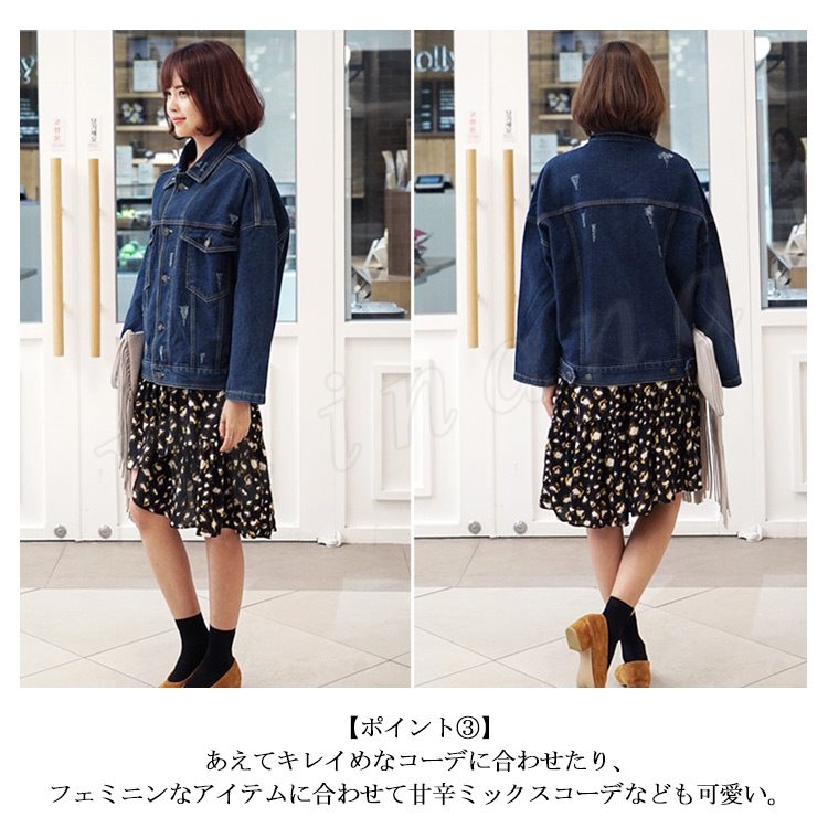 [2色] ショート丈Gジャン レディース ビッグシルエット デニム おしゃれ ショート丈 長袖 ライトアウター デニムジャケット ジャンパー 体型カバ