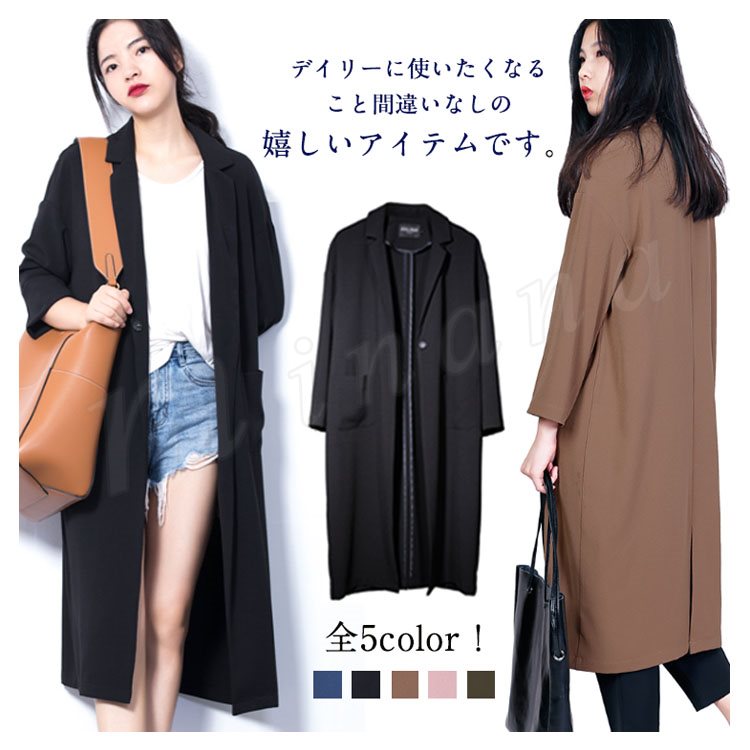 ロングアウター チェスターコート ミモレ丈 レディース コート スプリングコート ロングコート 無地 オシャレ カジュアル シンプル 秋物 秋服