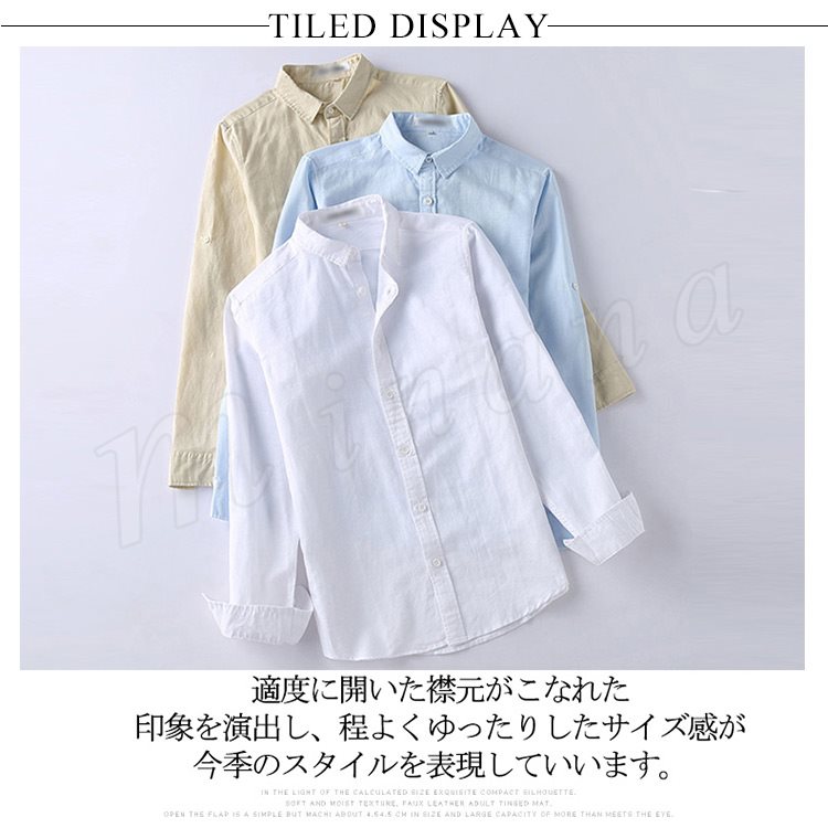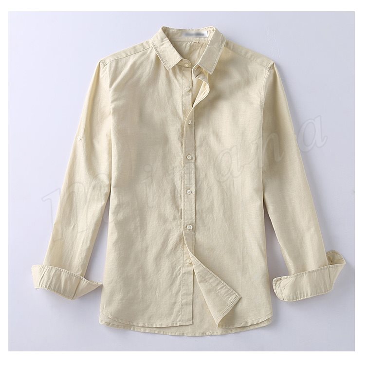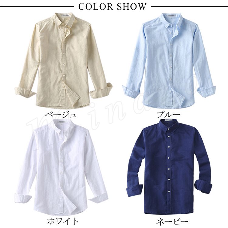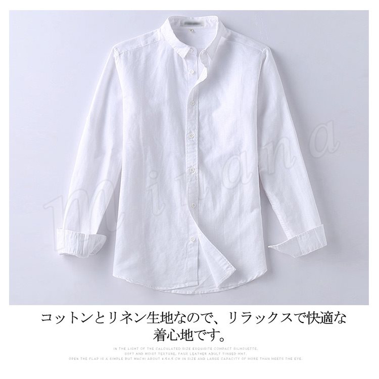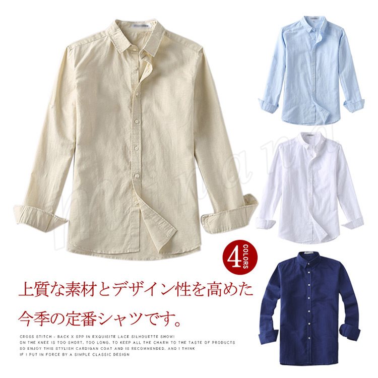 綿麻混の生地で快適!リネンコットンシャツ メンズシャツ シャツ メンズ リネンシャツ 綿 麻 シャツ 無地 長袖 トップス カジュアルシャツ 薄手 春