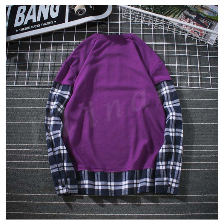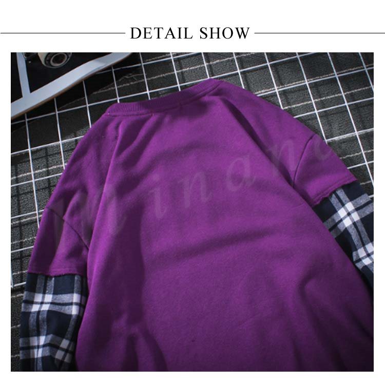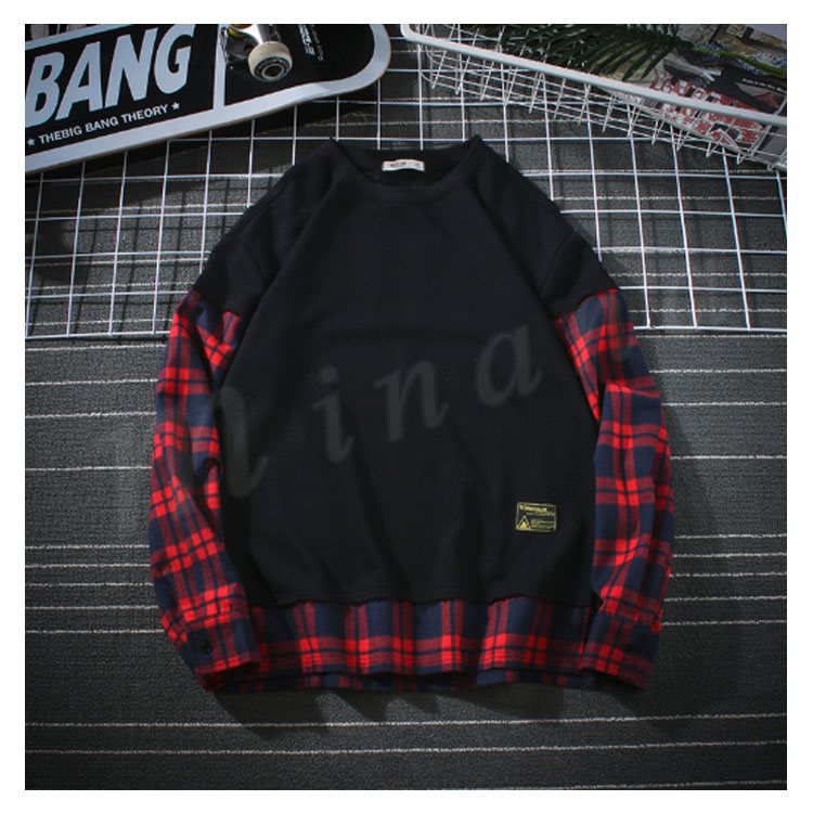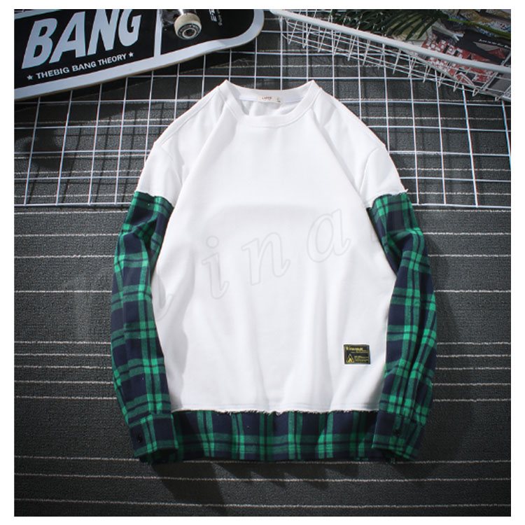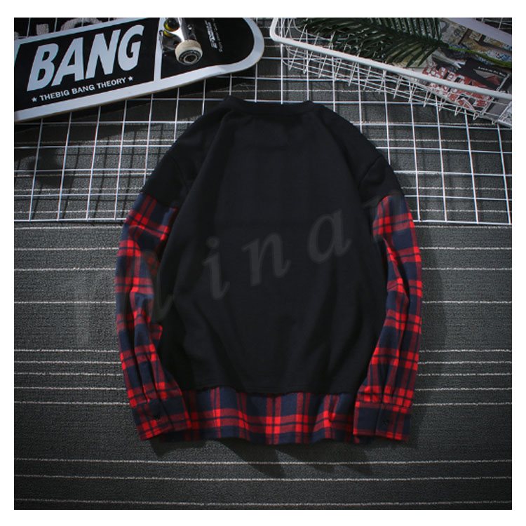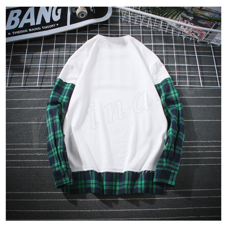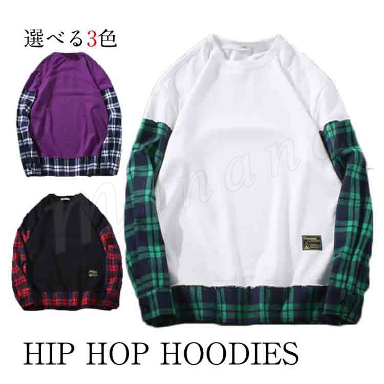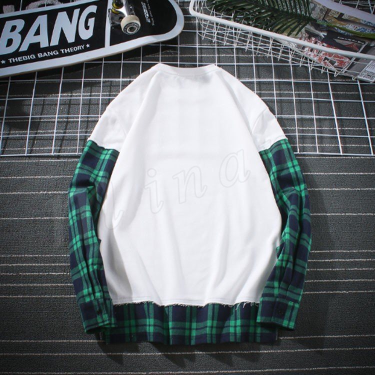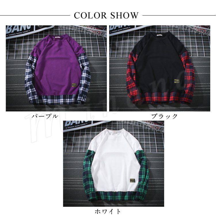 袖二重 レイヤード Tシャツ メンズ 長袖 裾出し 重ね着 クルーネック チェック カジュアル シンプル レイヤード 秋服 カットソー 大きいサイズ