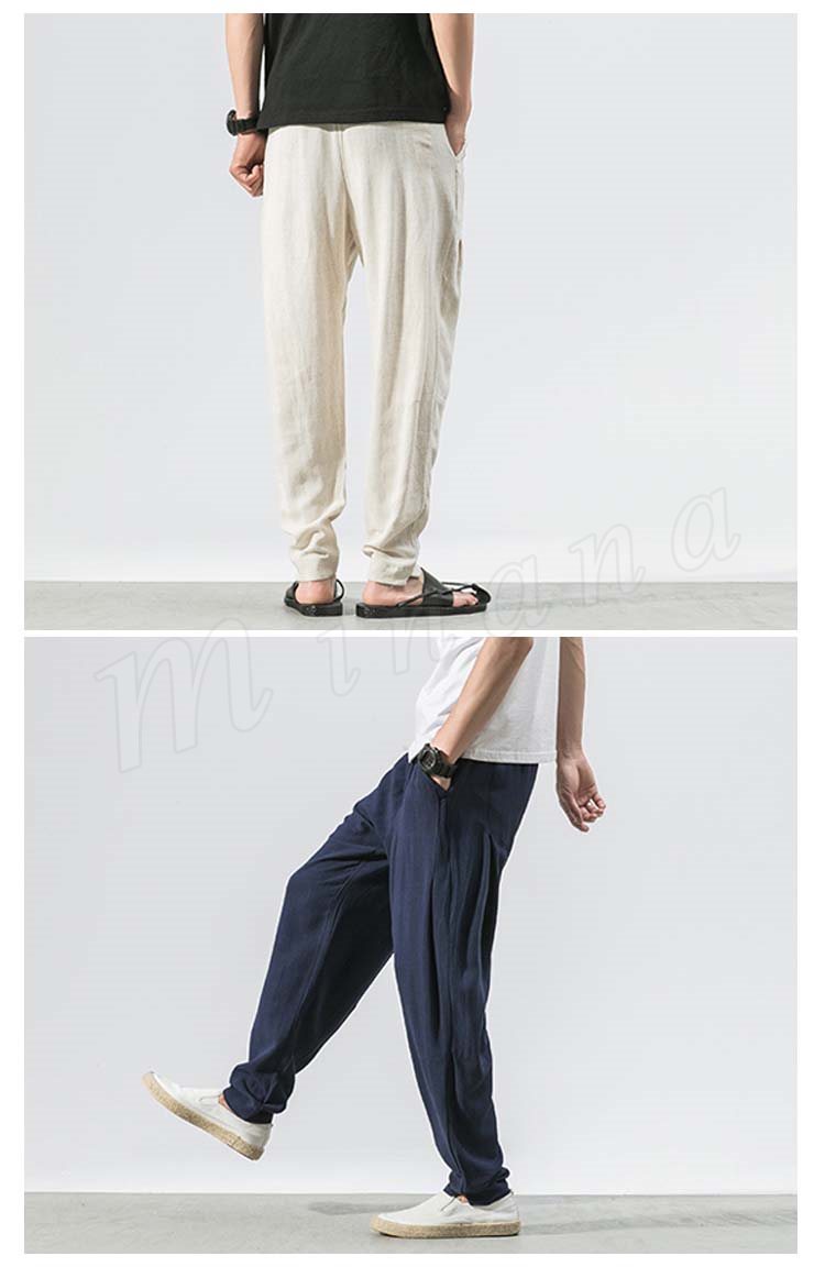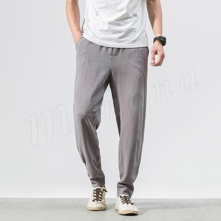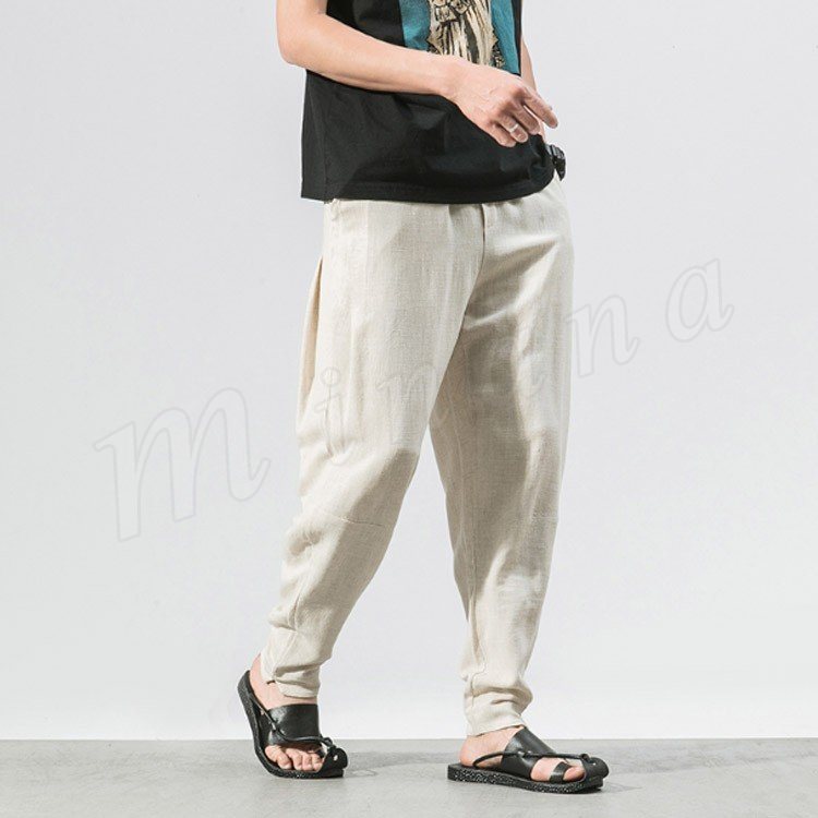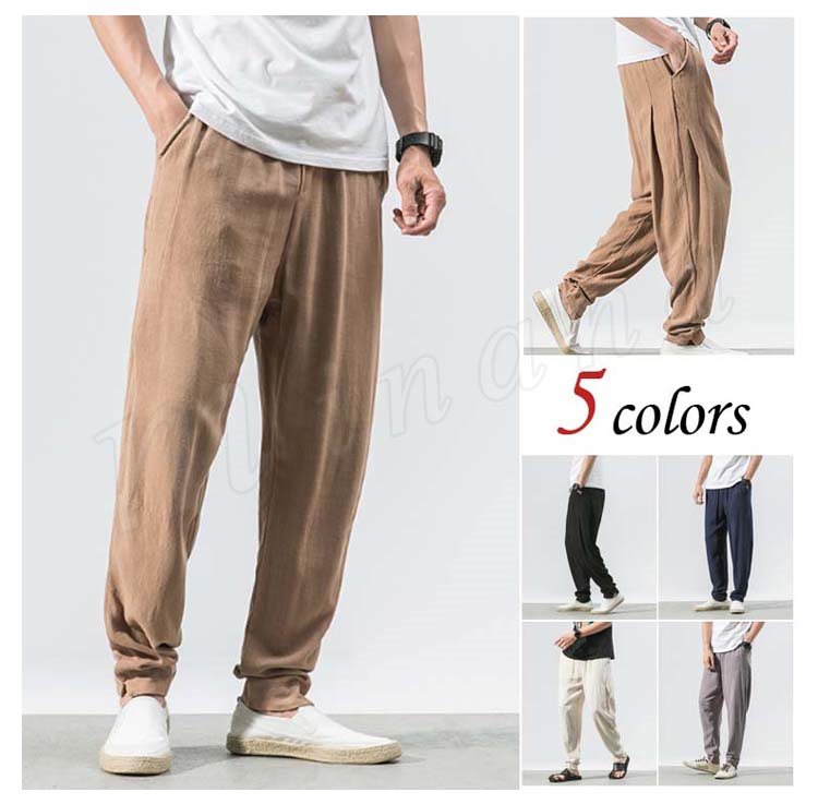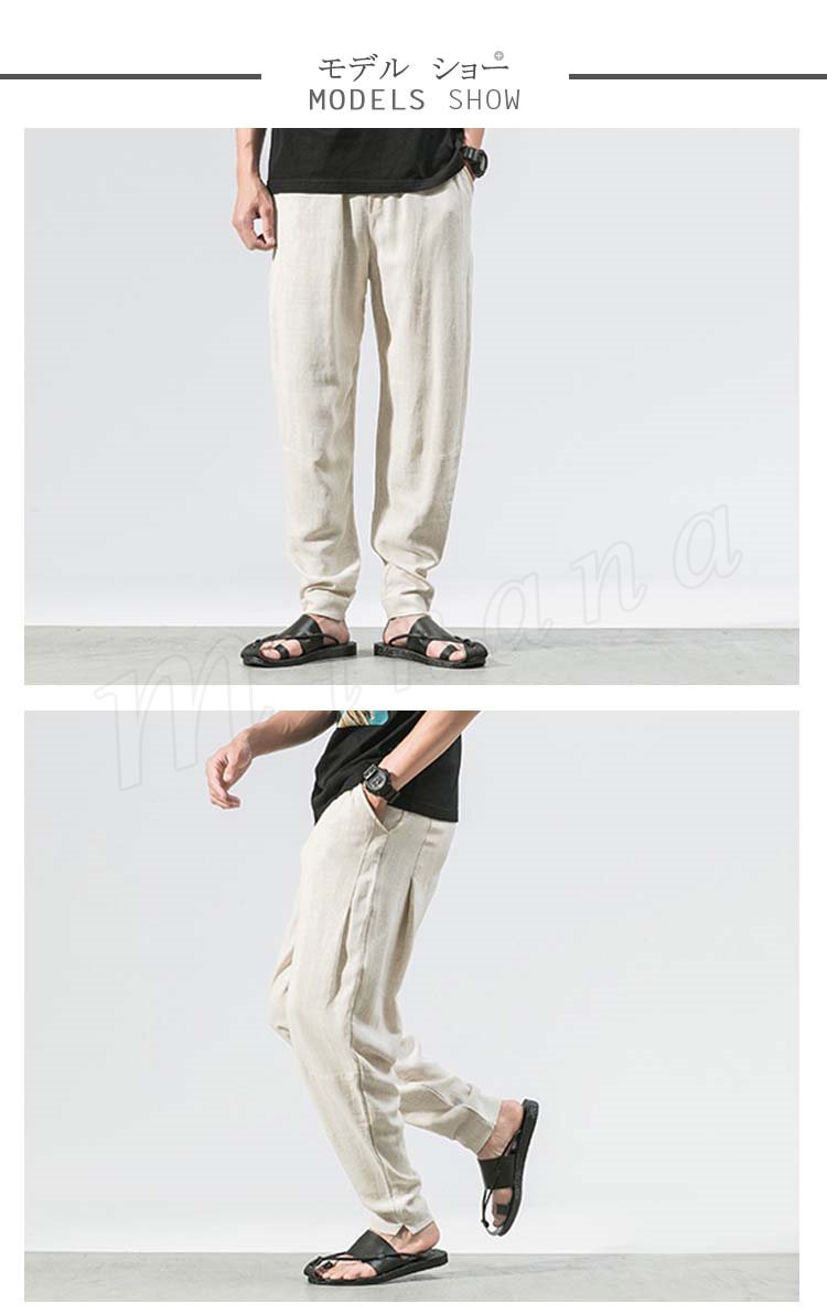 メンズ クロップドパンツ 綿麻 リネンパンツ ボトムス ウエストゴム 春服 夏服 新作 カジュアル
