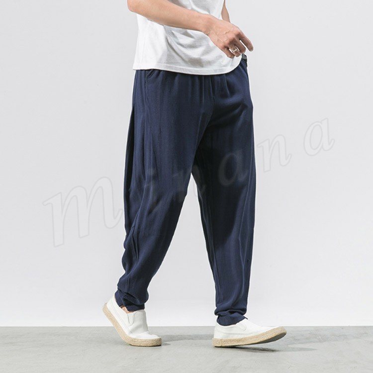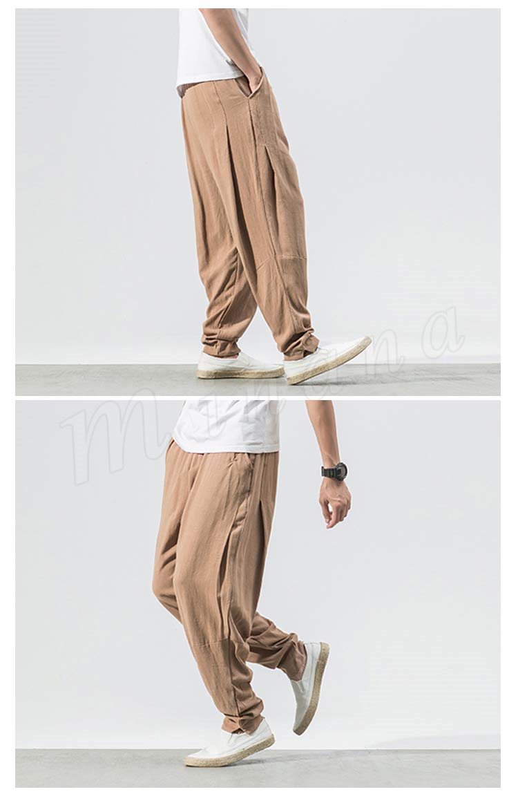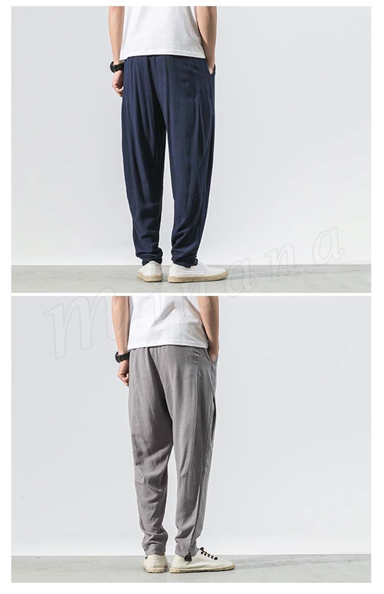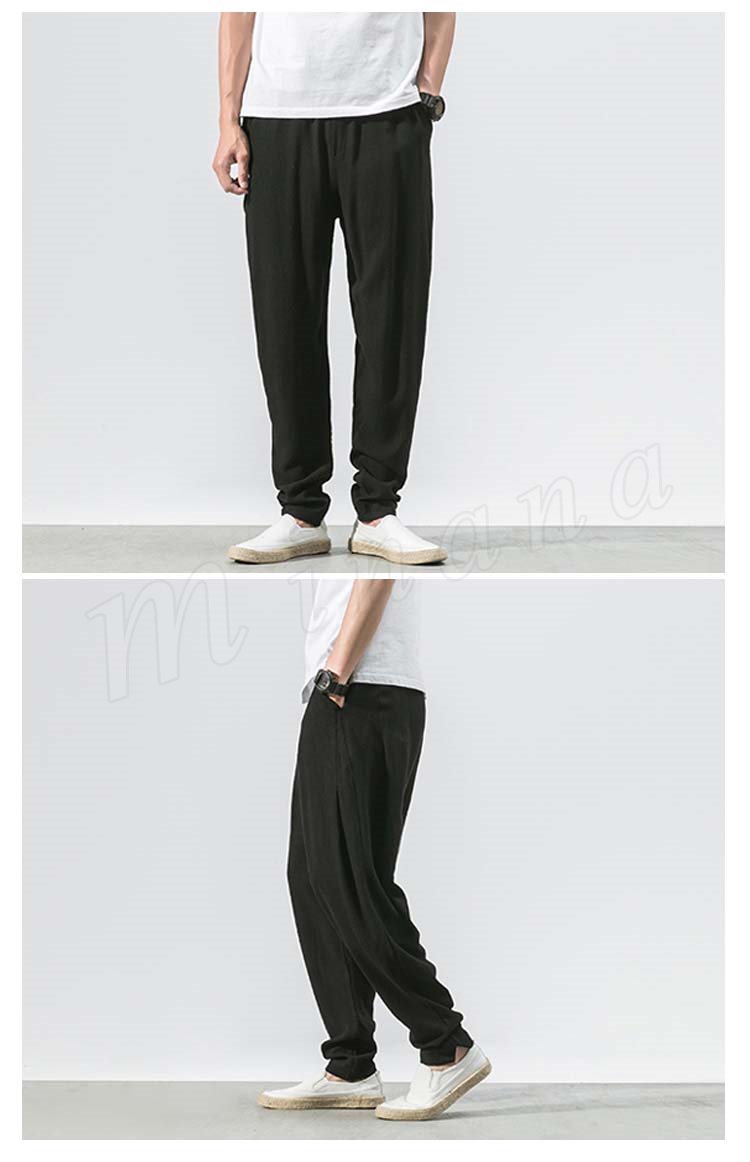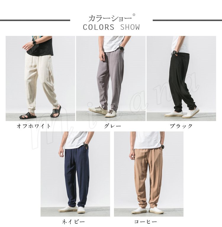 メンズ クロップドパンツ 綿麻 リネンパンツ ボトムス ウエストゴム 春服 夏服 新作 カジュアル