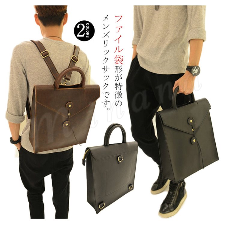 ファイル袋形が特徴のメンズリックサックです。