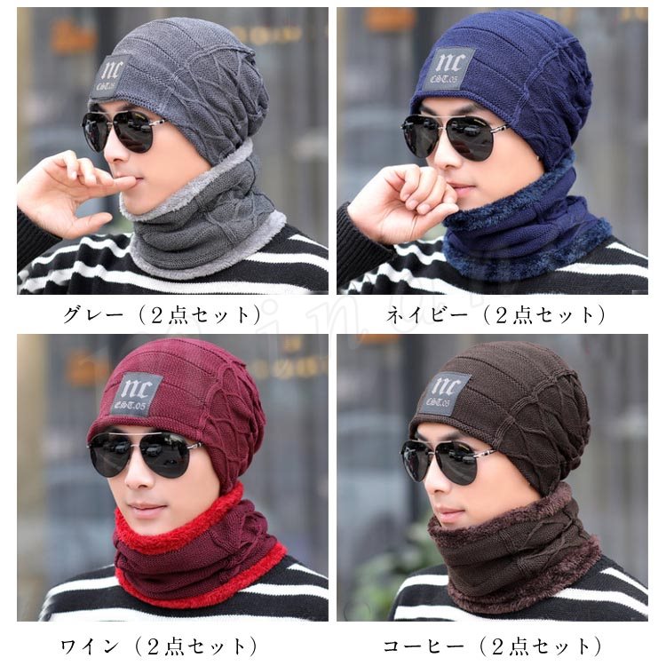 2タイプ ニット帽 ヌード 2点セット メンズ キャップ 裏起毛 帽子 ニット シンプル アクリル 秋物 冬物 厚手 ファション 秋冬 無地 防寒