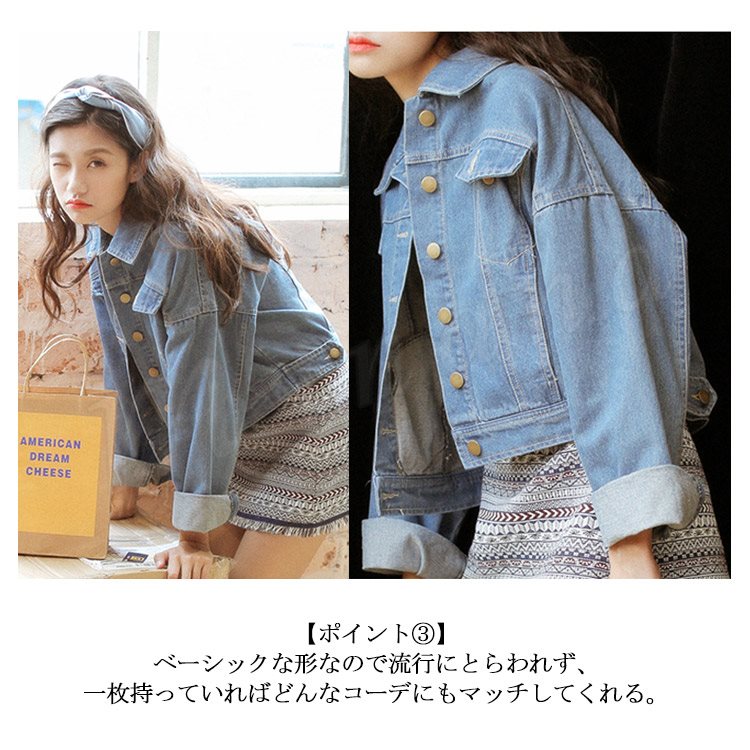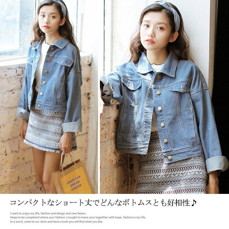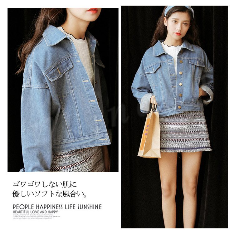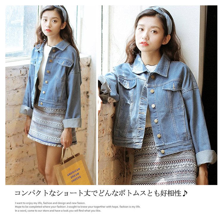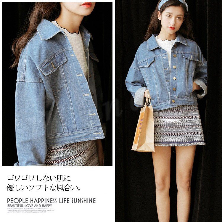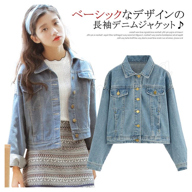 [ライトブルー] ショート丈Gジャン レディース ショート丈デニム おしゃれ ショート丈 長袖 ライトアウター デニムジャケット ジャンパー 体型カバ
