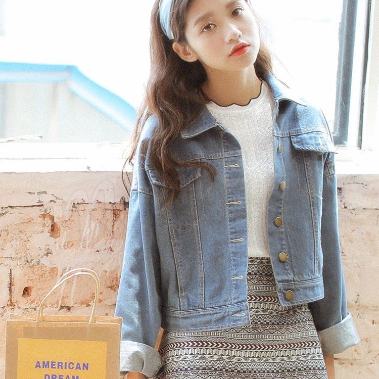 ベーシックなデザインの長袖デニムジャケット♪