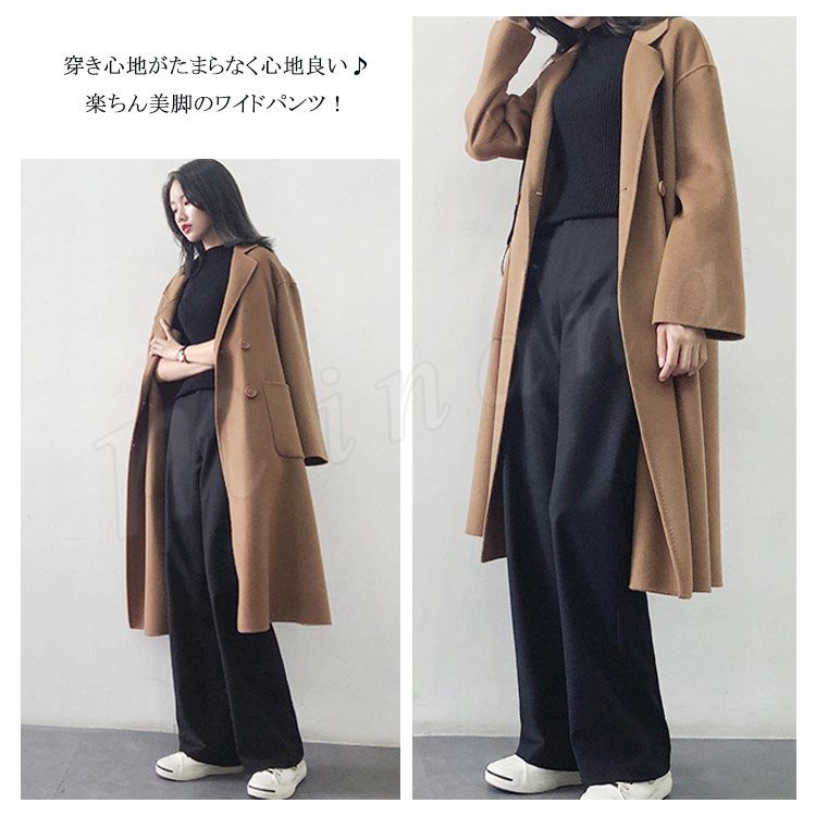 ロング丈 ワイドパンツ ロングパンツ レデイース ガウチョパンツ 10分丈 パンツ ストレート パンツ マキシ丈 秋 冬 トレンド ウエストゴム