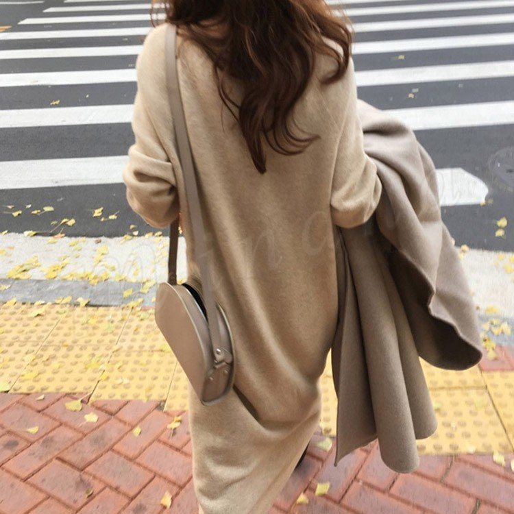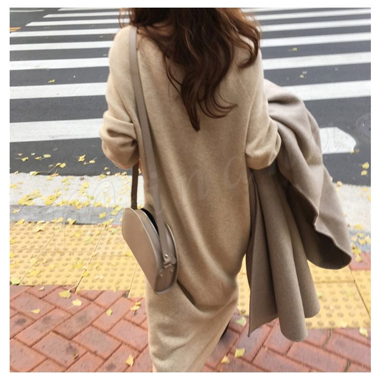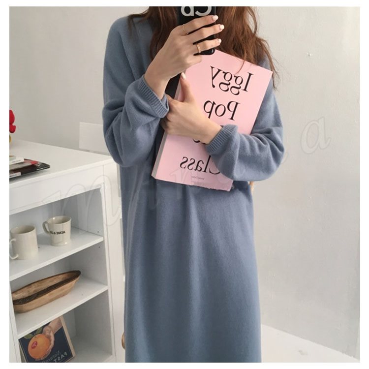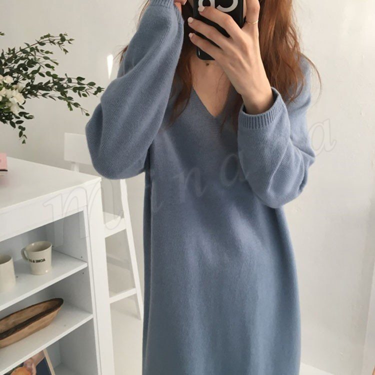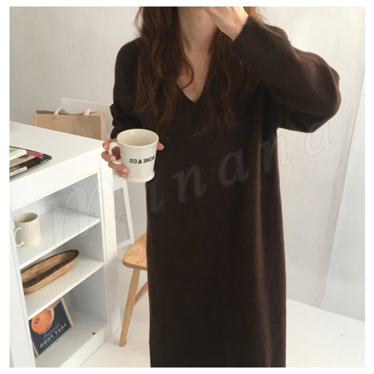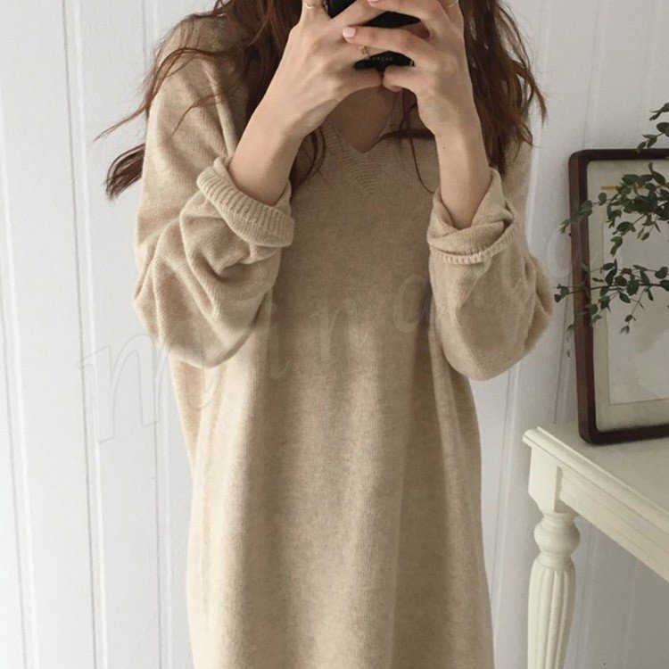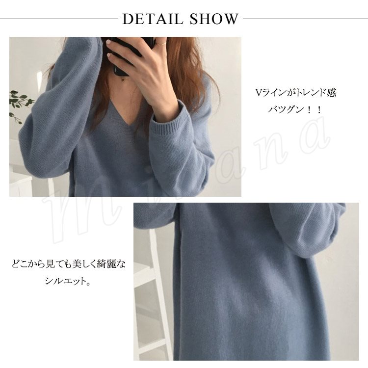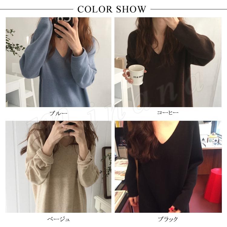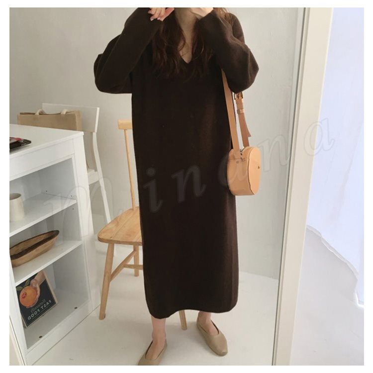Vネック ニットワンピース ミモレ丈 ロング丈 ニット ワンピース レディース ニットワンピース ニット ベーシック ゆったり