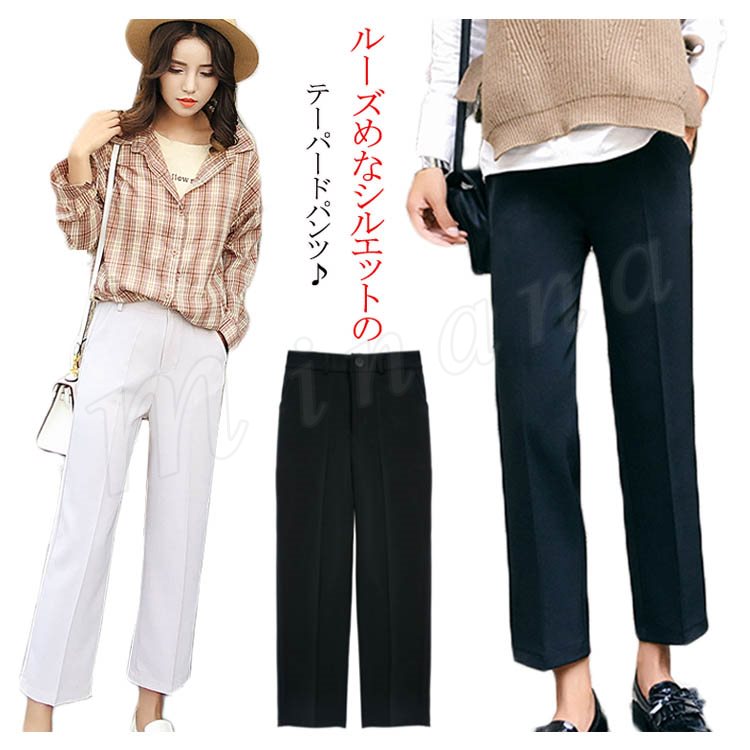 [2色]テーパードパンツ レディース アンクル丈 チノパンツ テーパード ボトムス パンツ きれいめ オフィス 通勤 クロップドパンツ 9分丈 女子