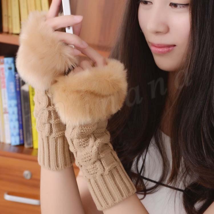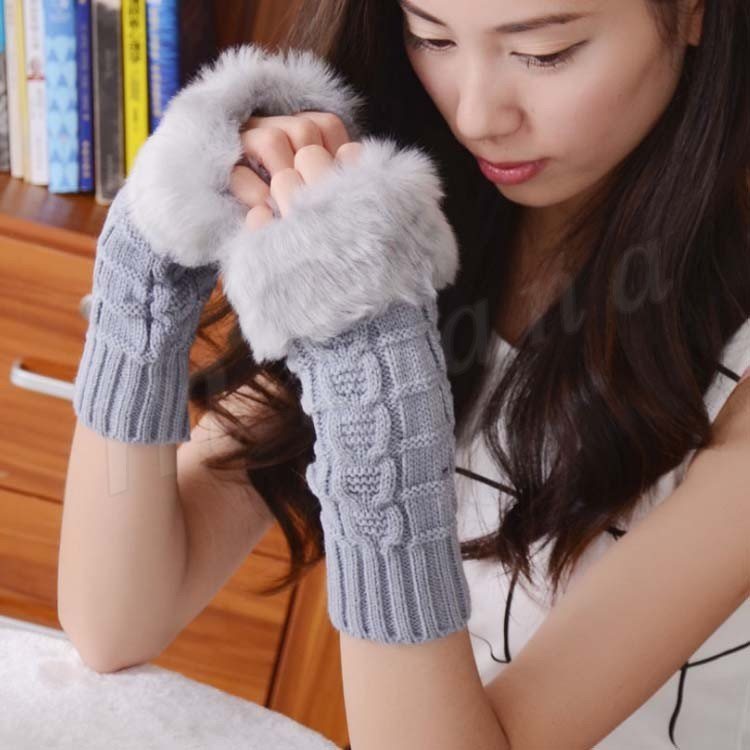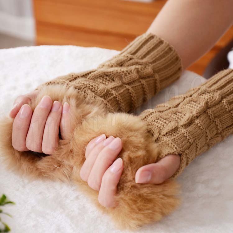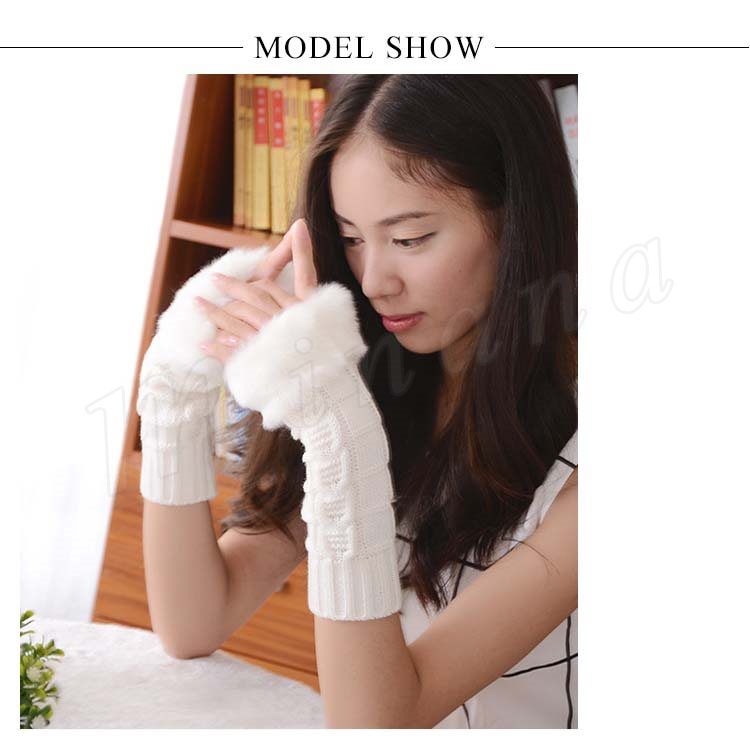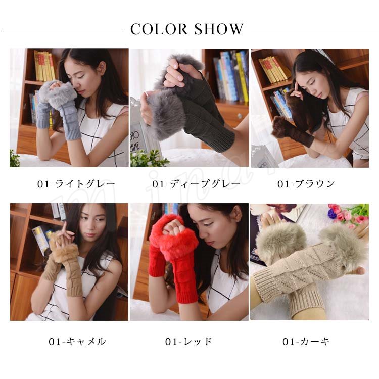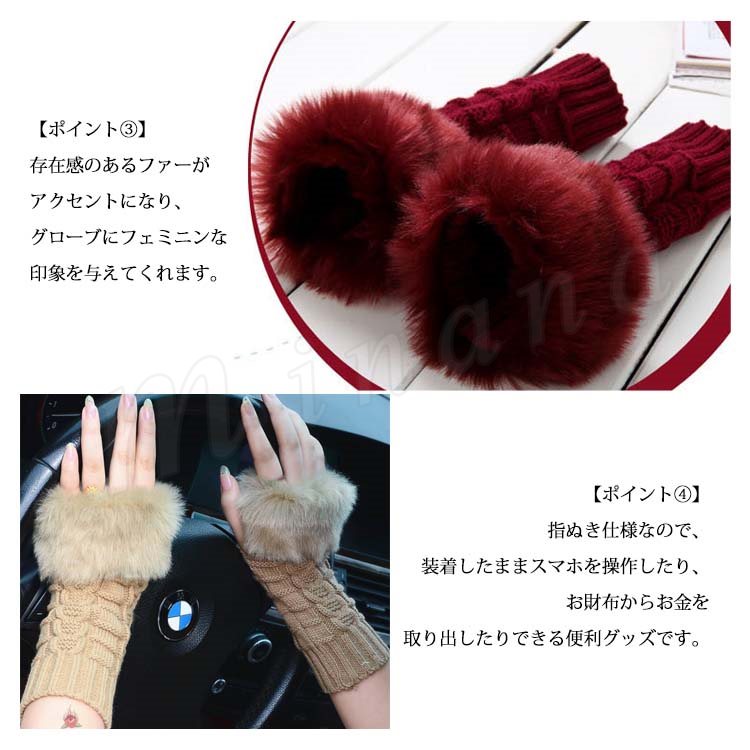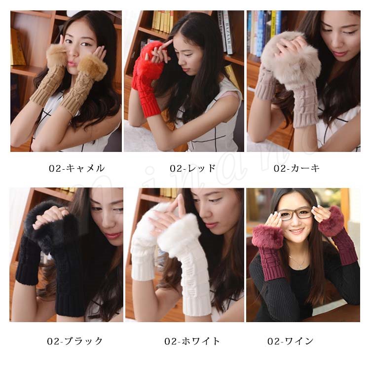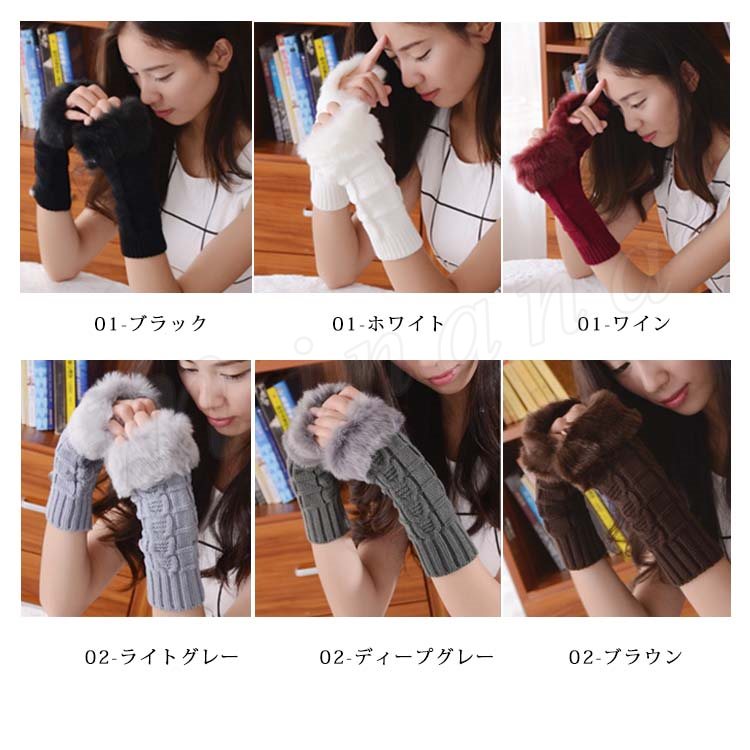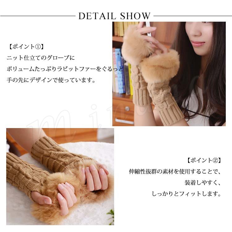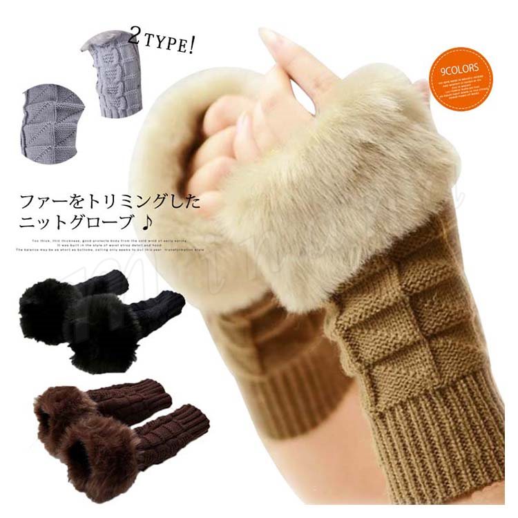 [18色展開]ファー&ニット 長めのグローブ 指ぬき手袋 レディース ファーグローブ 手袋 スマホ 指なし ファー付き 暖か 秋冬 プレゼント 女子