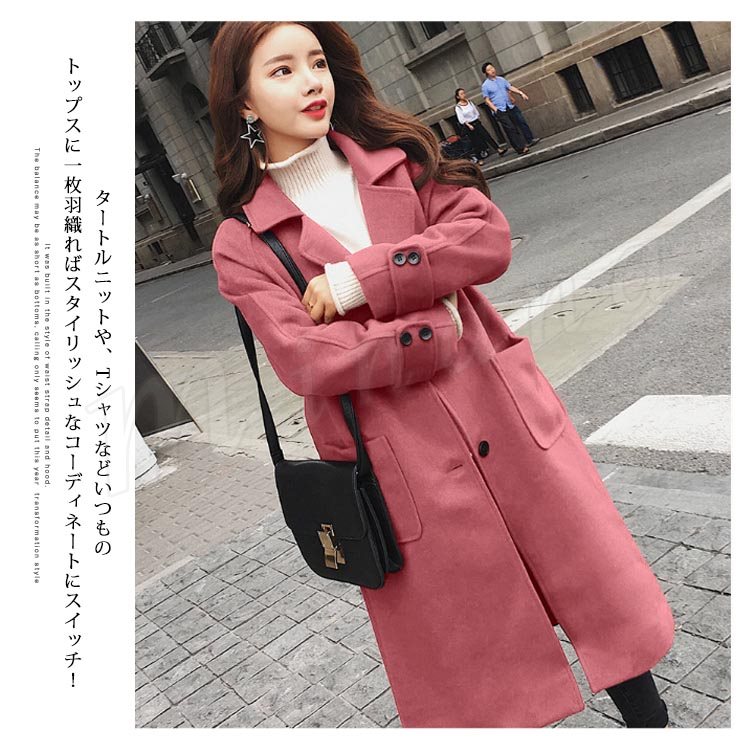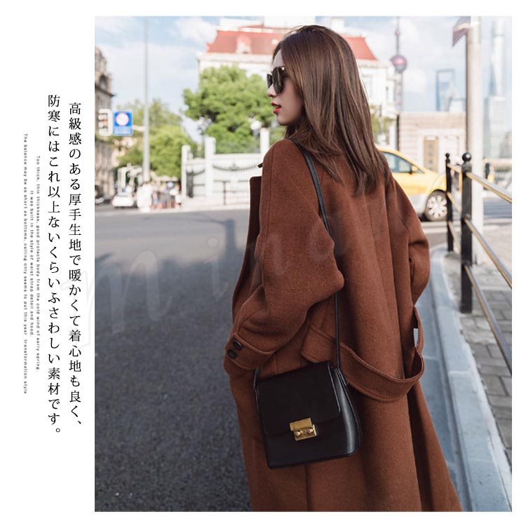 秋冬定番のアイテム ロングコート レディース アウター コート ロング丈 厚手 メルトンコート スプリングコート トレンチコート ゆったり 無地 オシ