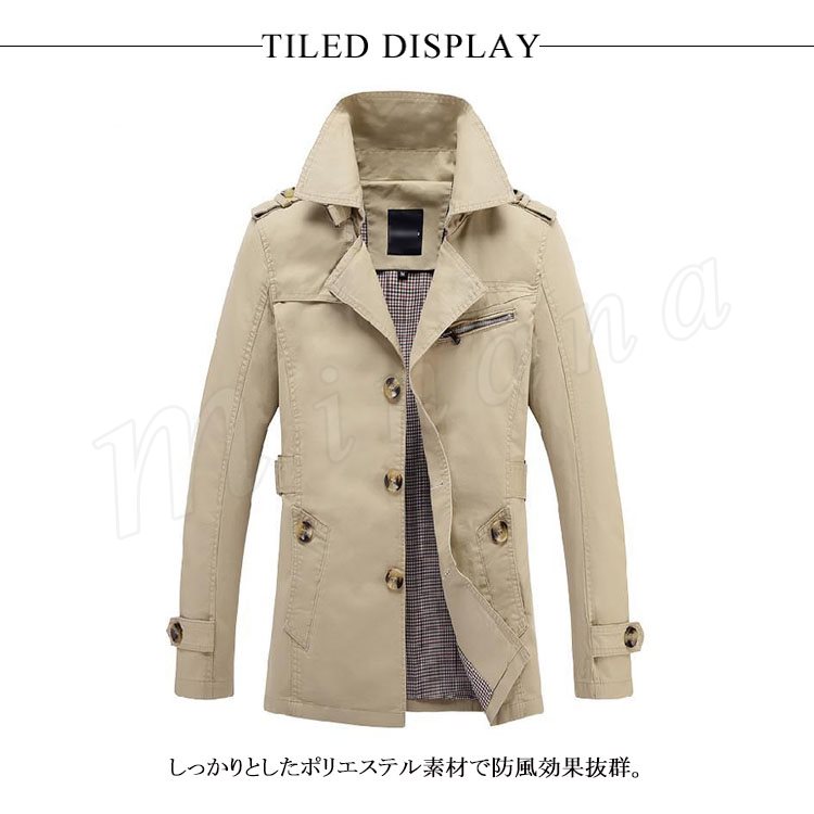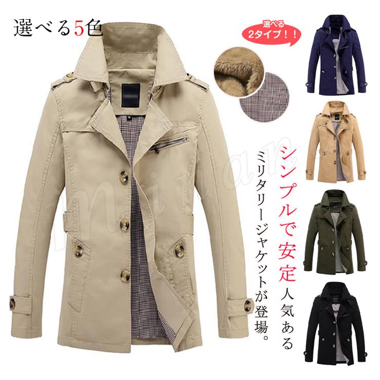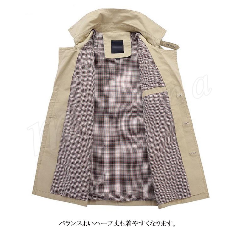 ミリタリージャケット スプリングコート メンズ 秋 ビジネスコート トレンチコート ハーフ丈 大きいサイズ 紳士 通勤コートアウター ジャケット ベー