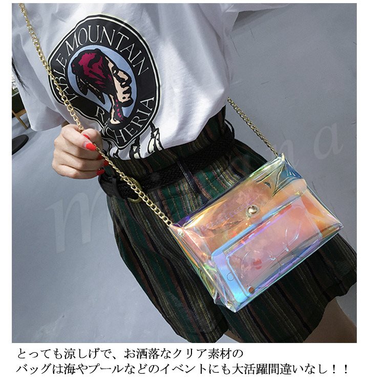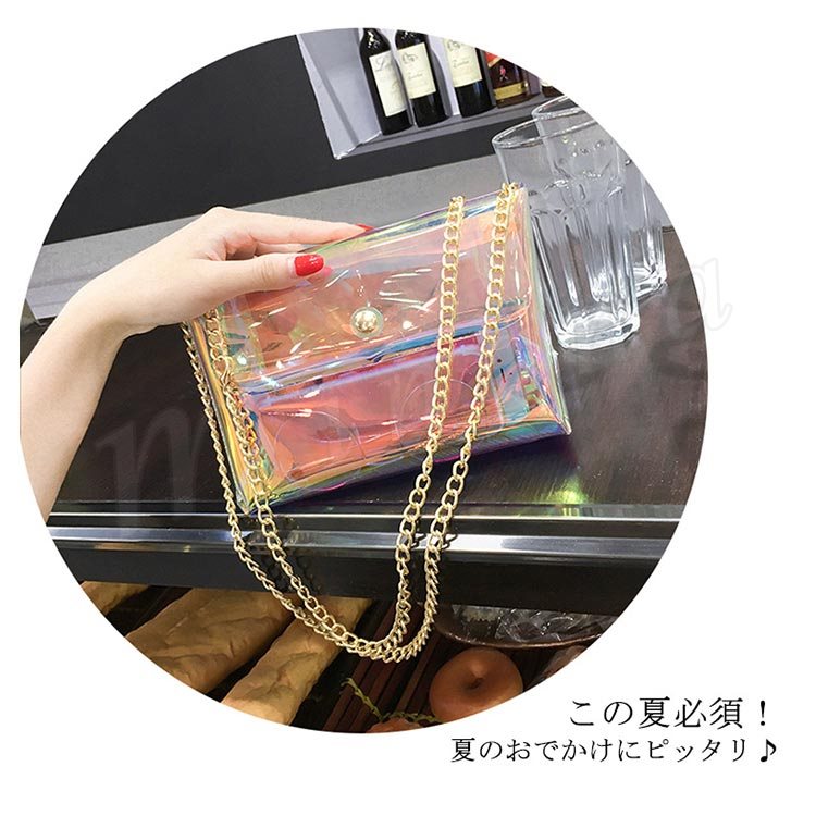 クリアバッグ ビニールバッグ 透明バッグ オーロラバッグ ミラーバッグ クリア ショルダーバッグ 肩がけバッグ リゾート 海 プール アウトドア スポ