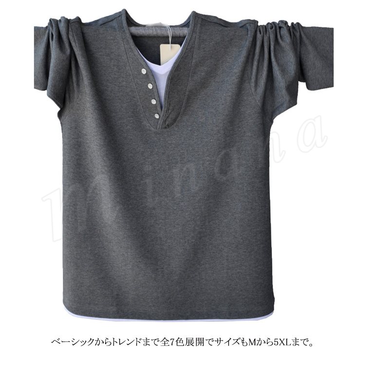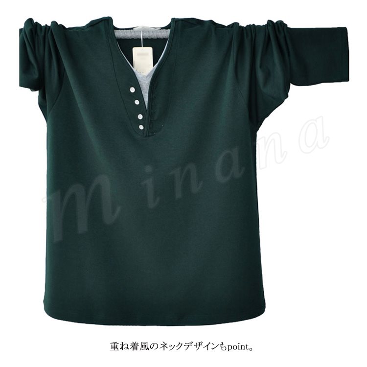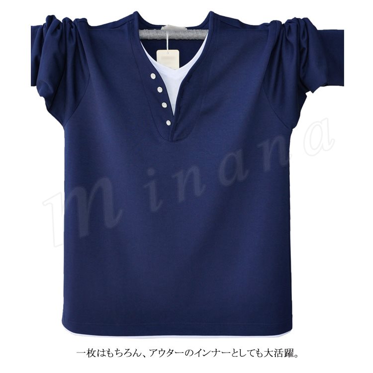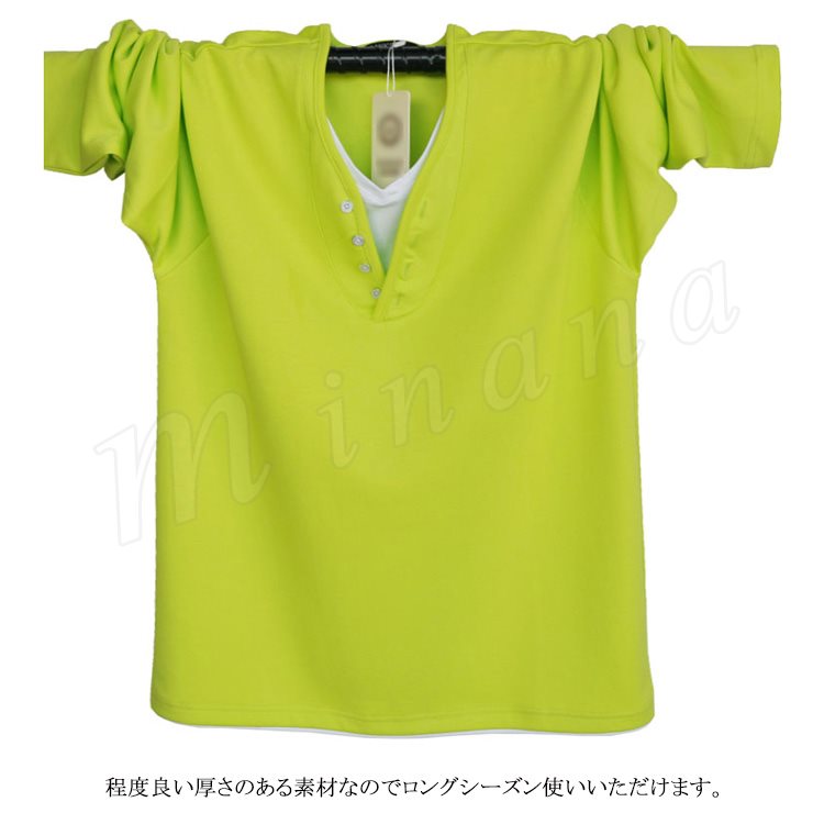 | 今季に欠かせない長袖tシャツ。 程度良い厚さのある素材なのでロングシーズン使いいただけます。 重ね着風のネックデザインもpoint。 ベーシックからトレンドまで全7色展開でサイズもMから5XLまで。 一枚はもちろん、アウターのインナーとしても大活躍。 | |