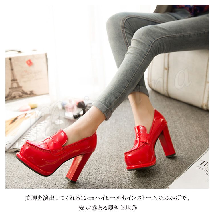 | 美脚スタイルの新定番♪ どの角度から見てもオシャレに決まるパンプス。 光沢感のあるエナメル調フェイクレザーを使用し、上品リッチな仕上がりに! つま先から脚にかけての縦ラインが強調され、足を長くキレイに魅せてくれる♪ 美脚を演出してくれる12cmハイヒールもインストームのおかげで、安定感ある履き心地◎ クッション性のあるインソールを使用しているので、長時間はいても足が痛くなりにくいのも嬉しい!! | |