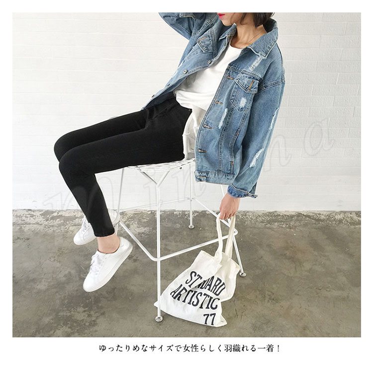 | ダメージ加工の大人っぽいのデニムアウター。 ゆったりめなサイズで女性らしく羽織れる一着! 少し肩が落ちたシルエットがこなれ感を出してくれ、おしゃれカジュアルなスタイルにぴったり♪ 柔らかく着心地よいのデニム生地だから、動きづらいこともなく楽に着られる。 トレンドの膝下丈のスカートや、ハイウエストのボトムとの相性抜群で合わせやすい★ くせのないシルエットなので長い期間使えるのもGood◎ | |