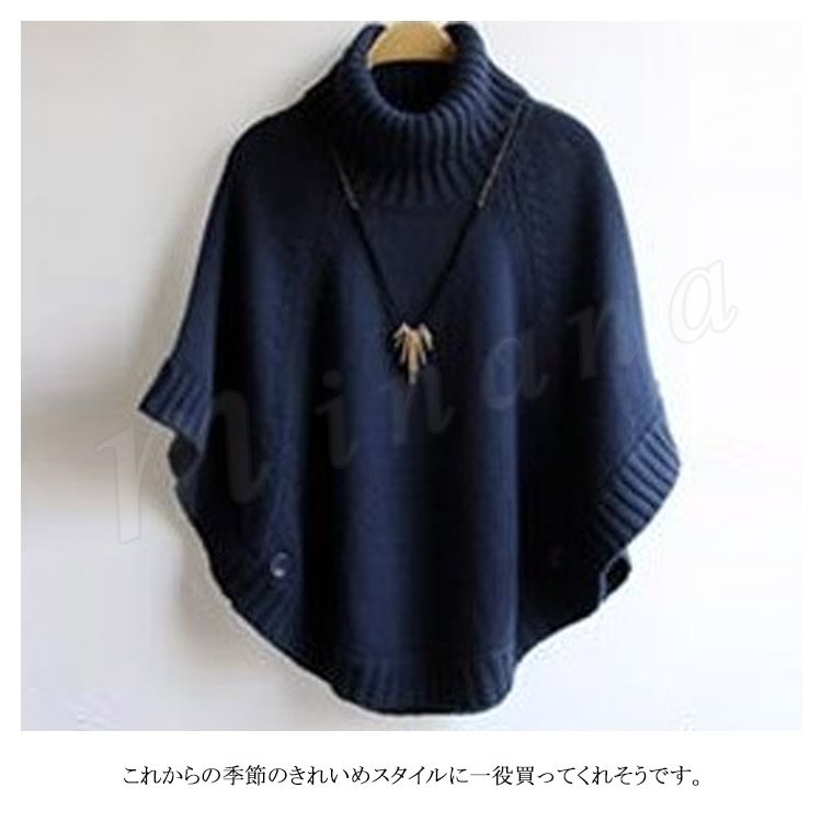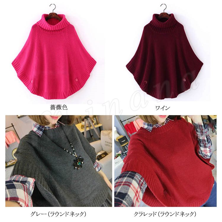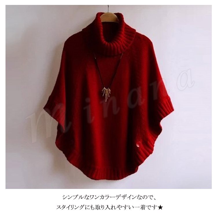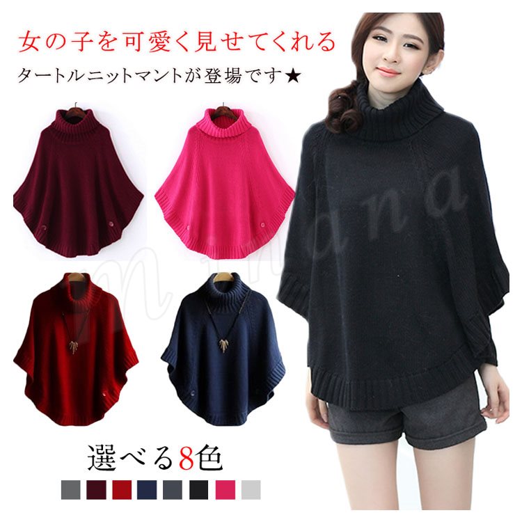 ニットプルオーバー マント トップス レディース ポンチョ マントニット 無地 厚手 タートル ニットポンチョ 女性用 アウター お洒落 秋冬