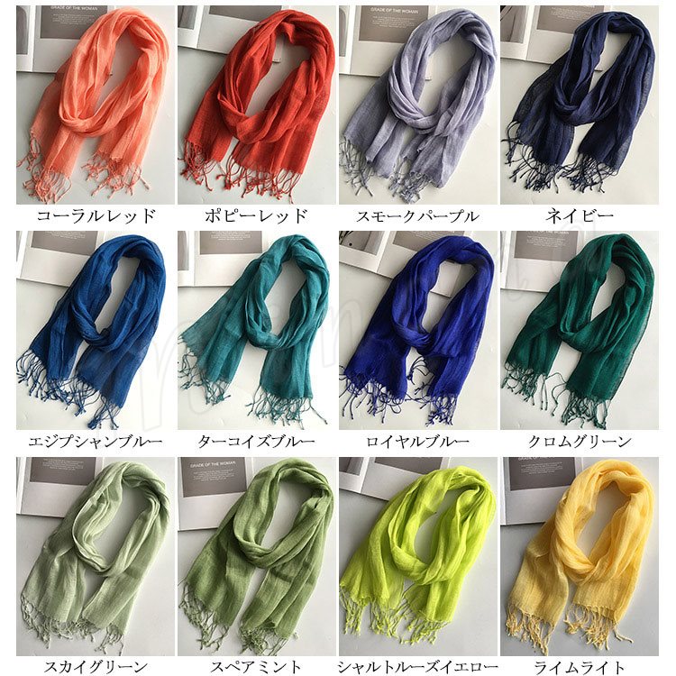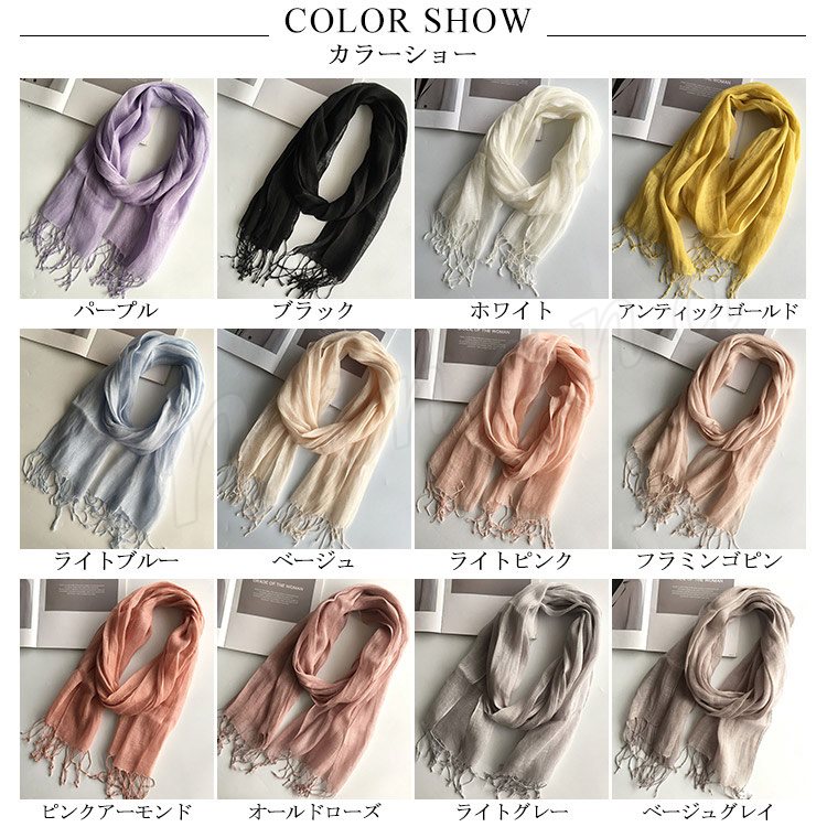 [24色展開]無地 ストール マフラー レディース 綿麻 ストール 春秋 フリンジ きれいめ 可愛い 女子