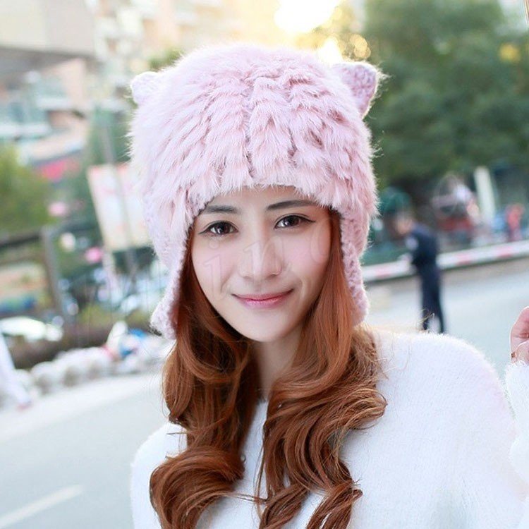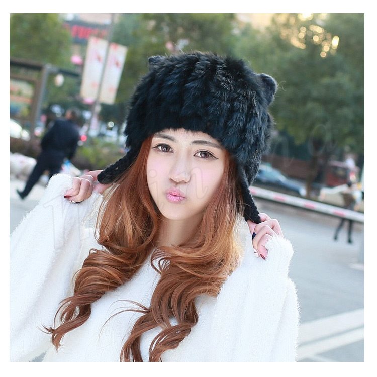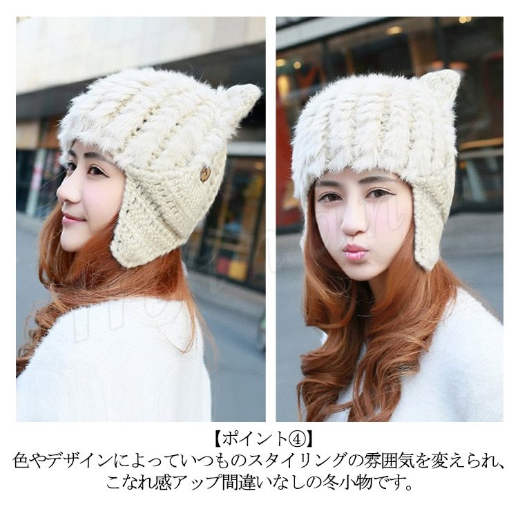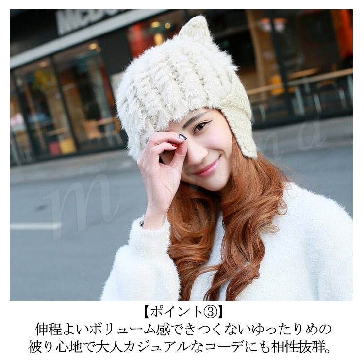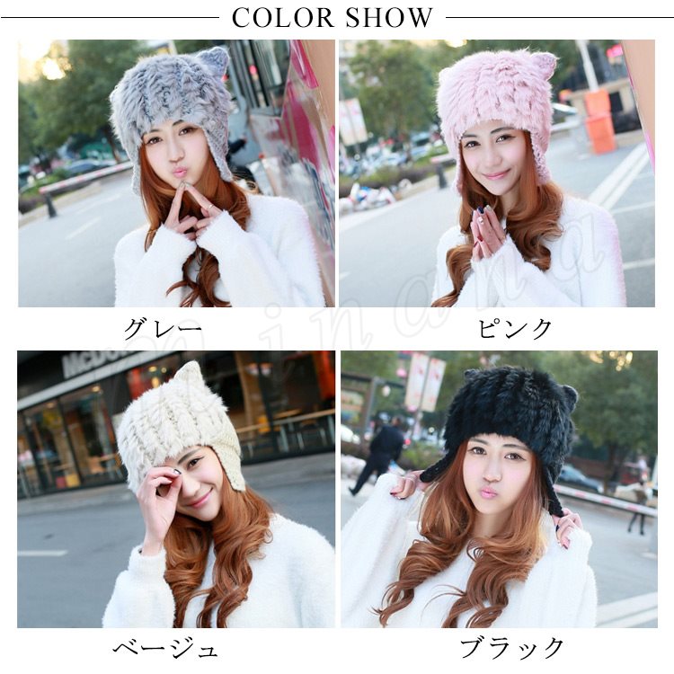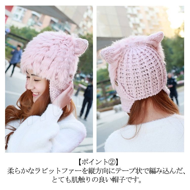 [4色展開]ラビットファー耳あて付帽子 レディース ファー 編み込み リアルファー 毛皮 秋冬 防寒 大人カジュアル 女性用 プレゼント ト