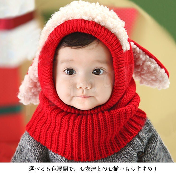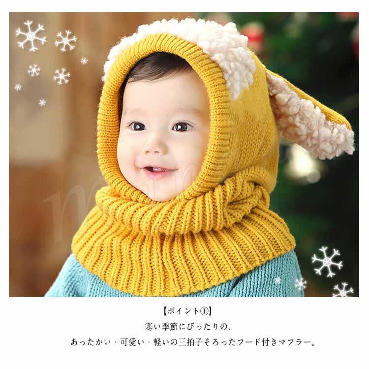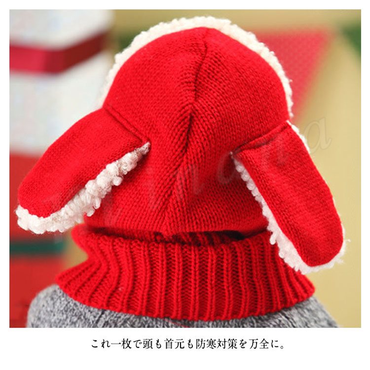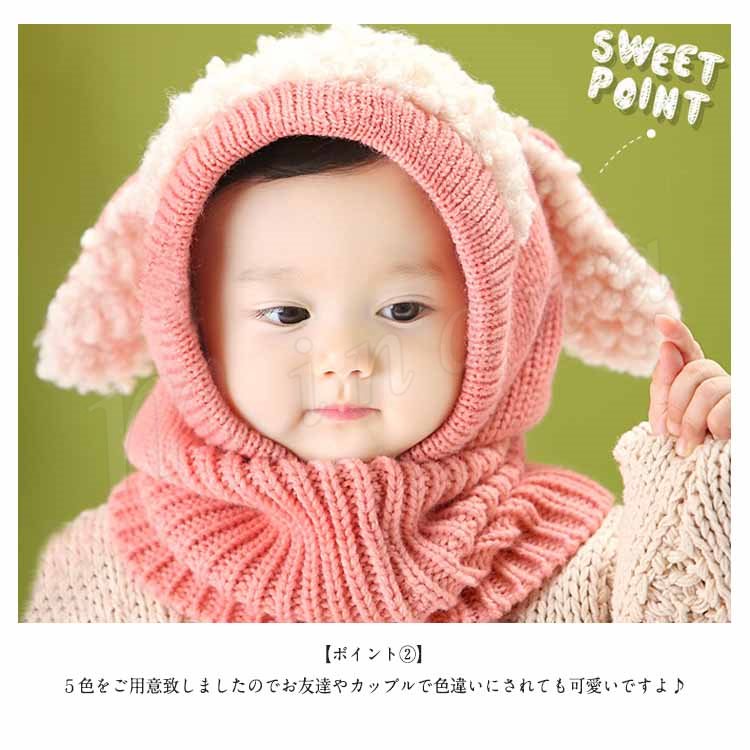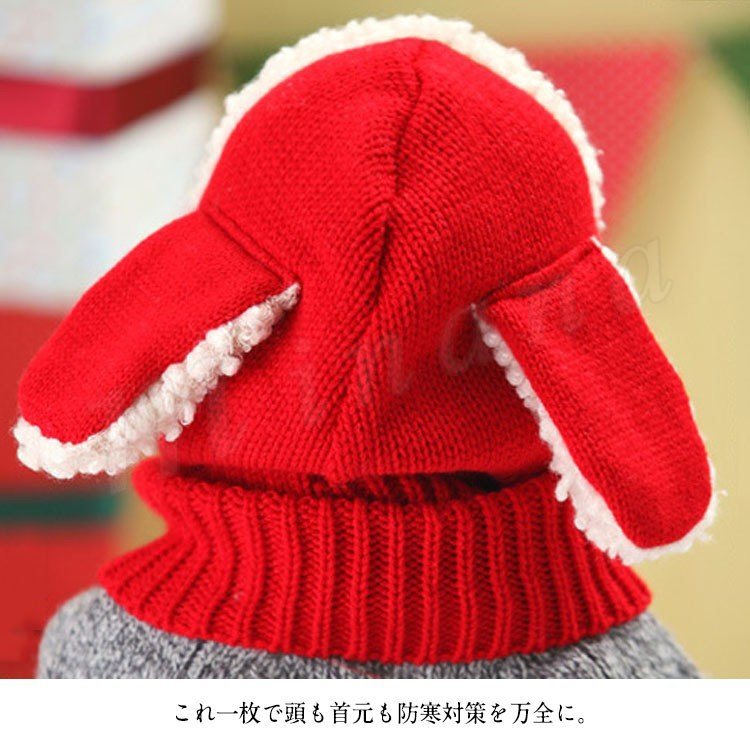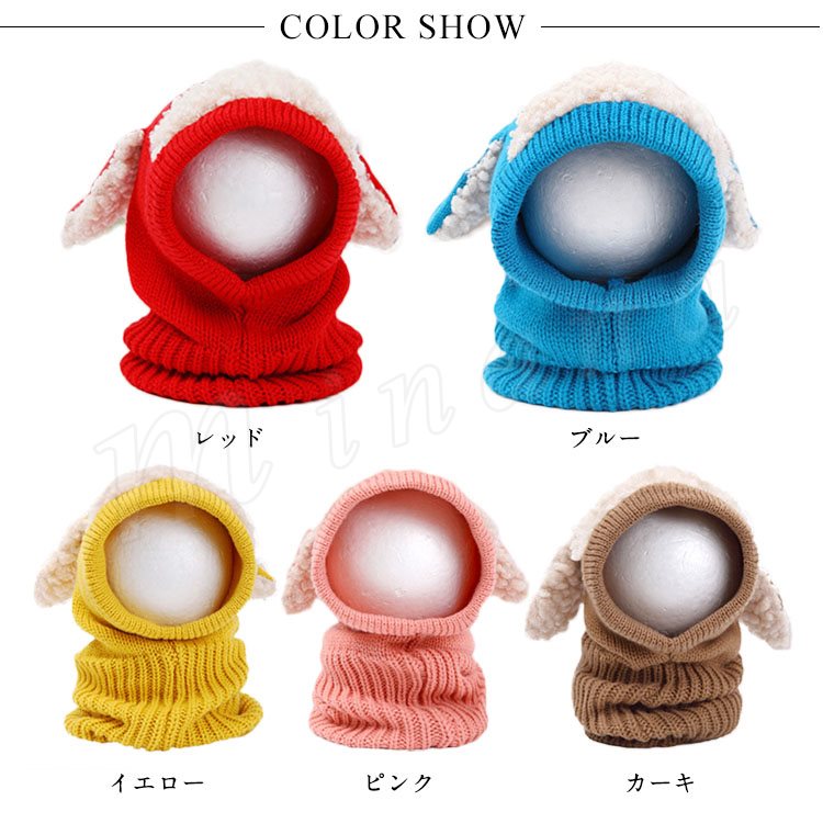 [5色展開]フード付きマフラー ニット帽子 耳あて キッズ 子供 女の子 男の子 肩掛け ストール ネックウォーマー フード 防寒 秋冬 かわいい 犬