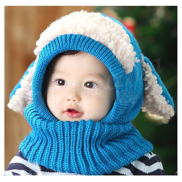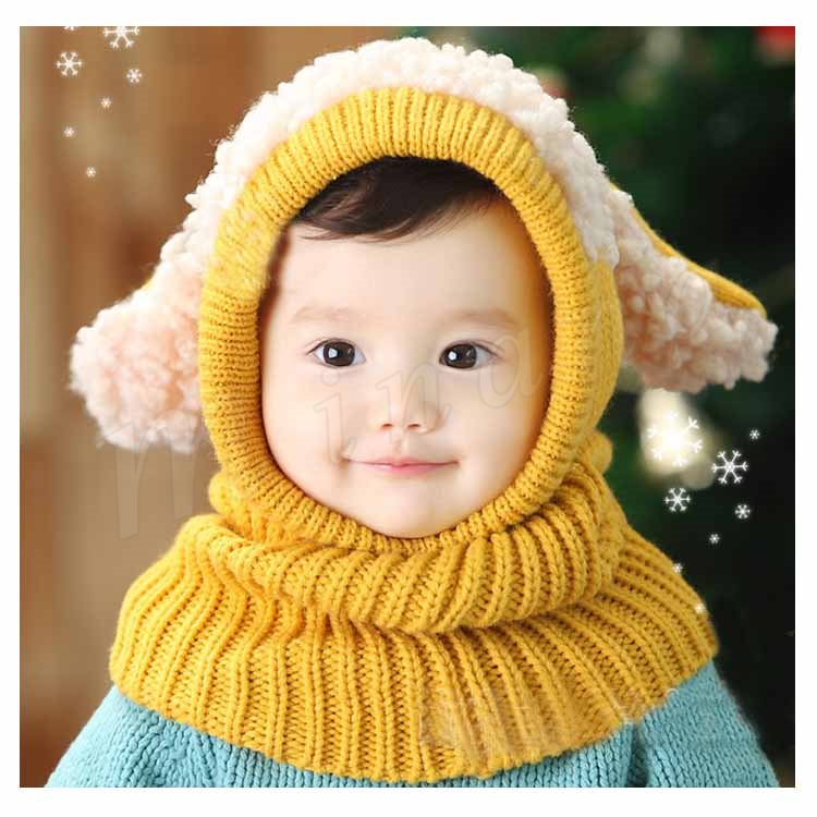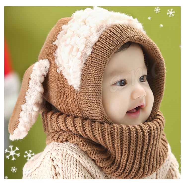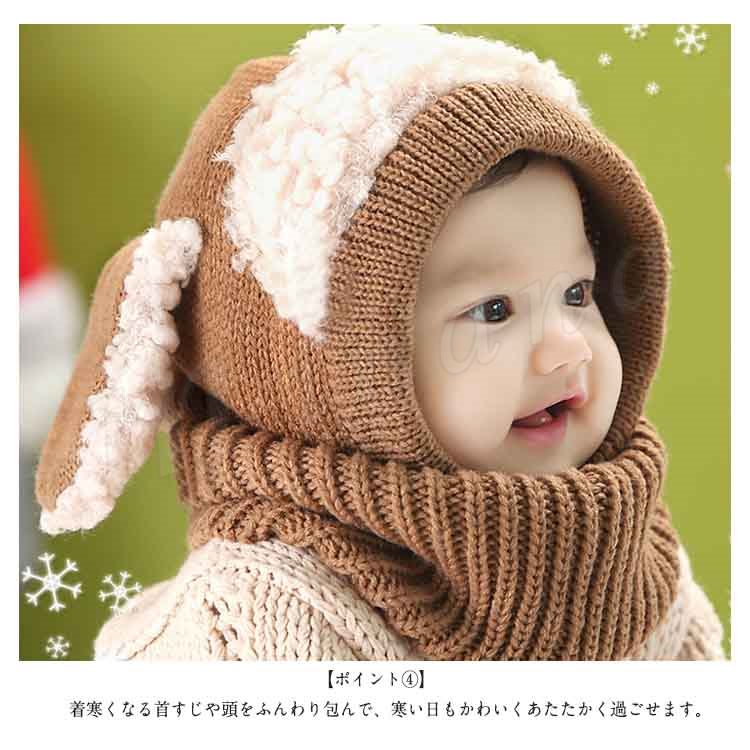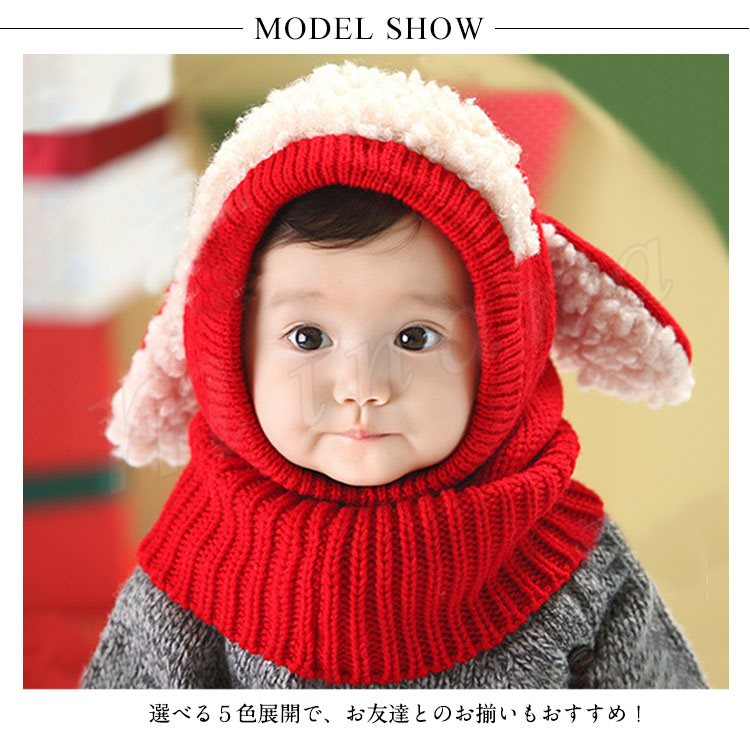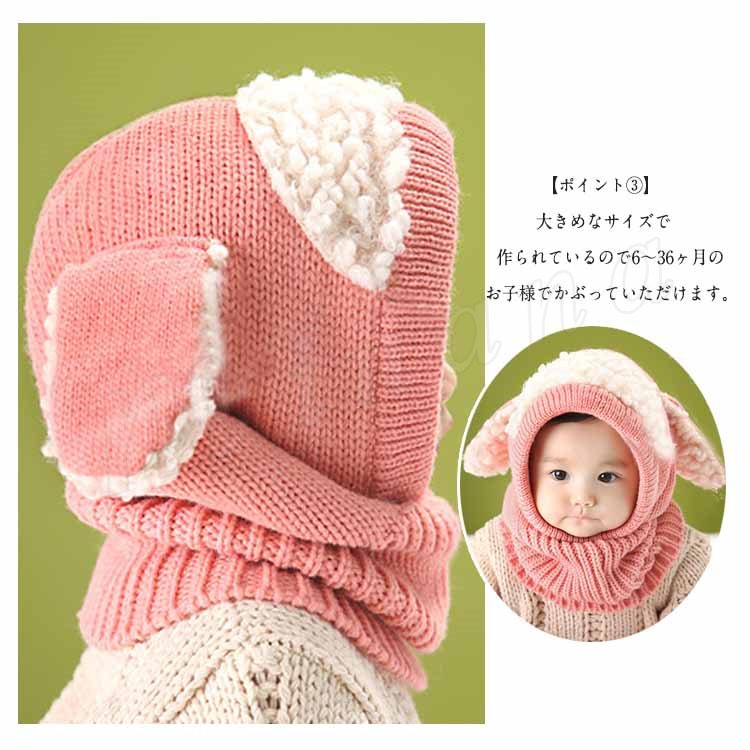 [5色展開]フード付きマフラー ニット帽子 耳あて キッズ 子供 女の子 男の子 肩掛け ストール ネックウォーマー フード 防寒 秋冬 かわいい 犬