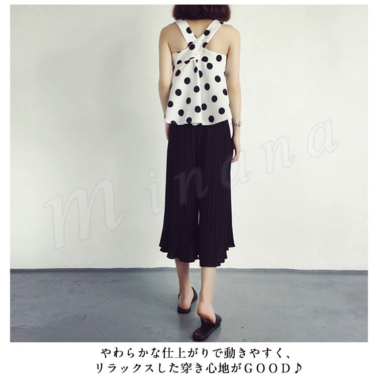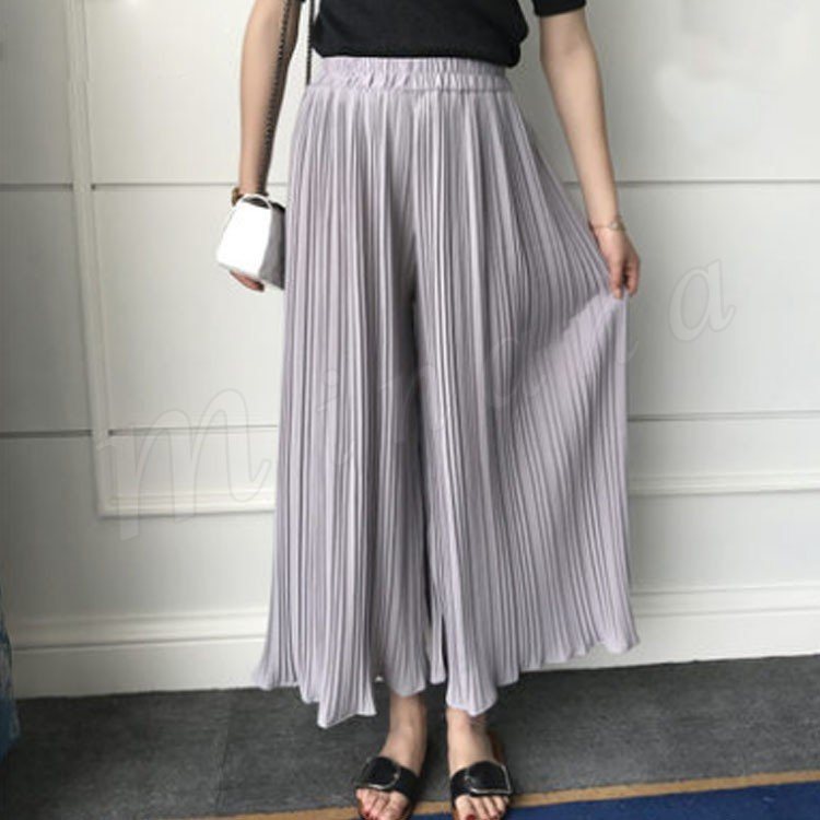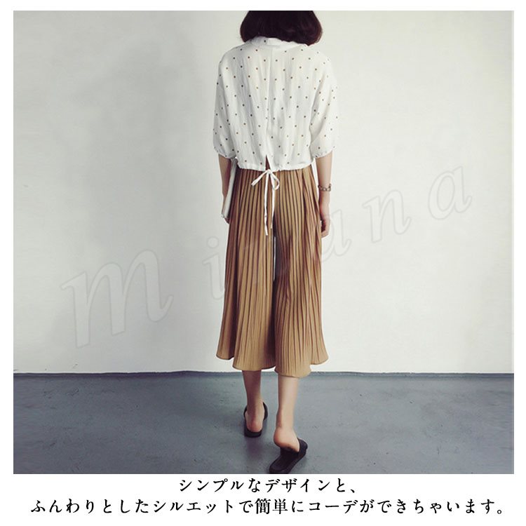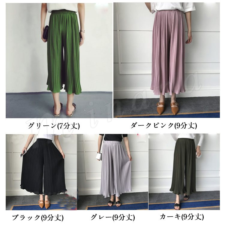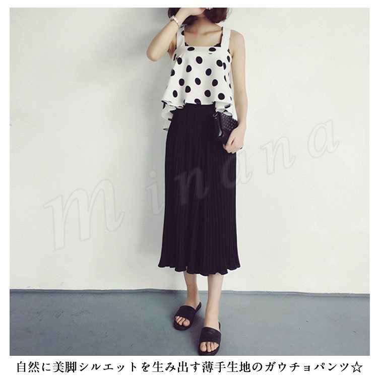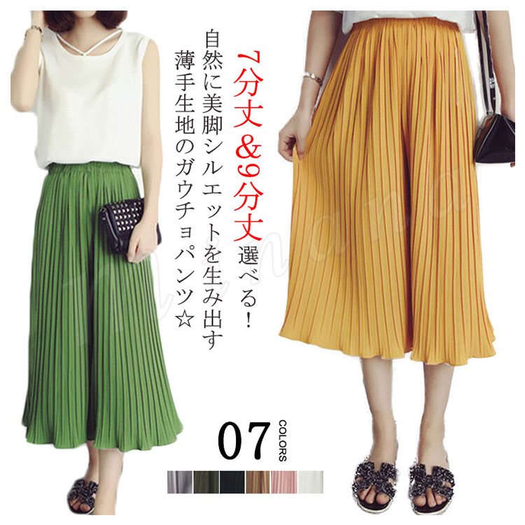 7分丈&9分丈選べる。シフォン ガウチョパンツ ボトムス プリーツパンツ ワイドパンツ シフォンパンツ アンクルパンツ ウエストゴム レディース 春夏
