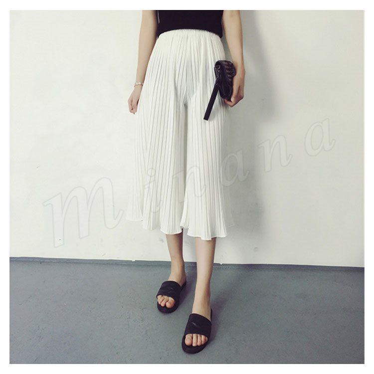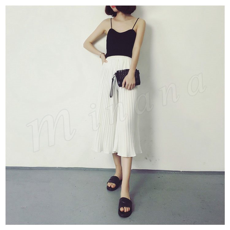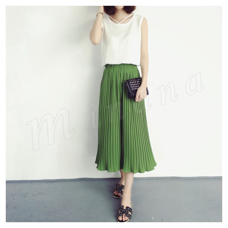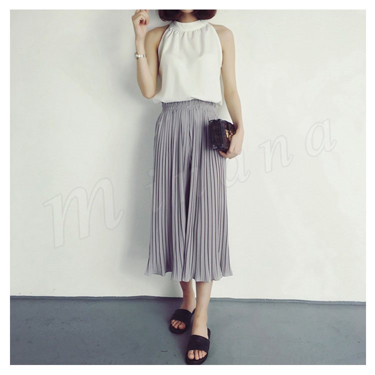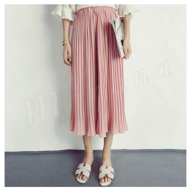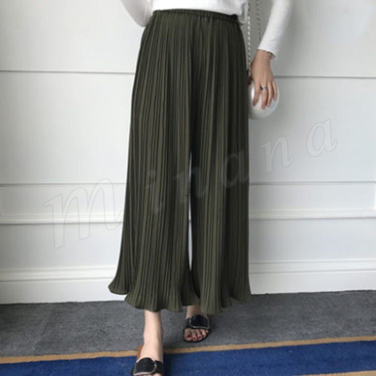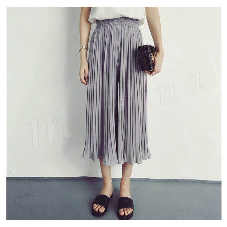 7分丈&9分丈選べる。シフォン ガウチョパンツ ボトムス プリーツパンツ ワイドパンツ シフォンパンツ アンクルパンツ ウエストゴム レディース 春夏