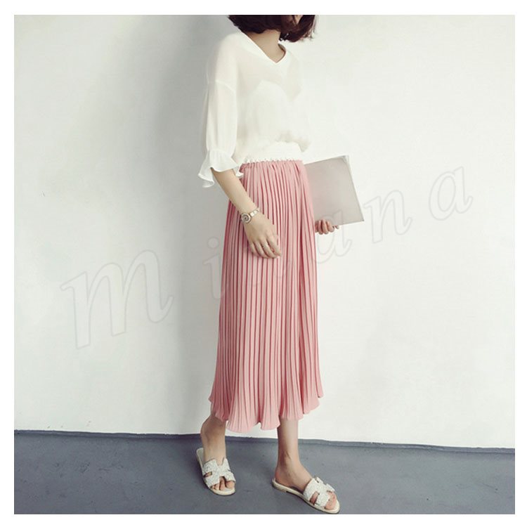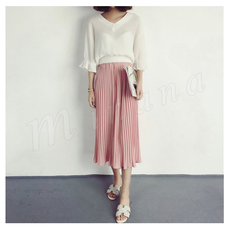 プリーツのラインが自然に美脚ラインを作り脚長効果もばっちり!