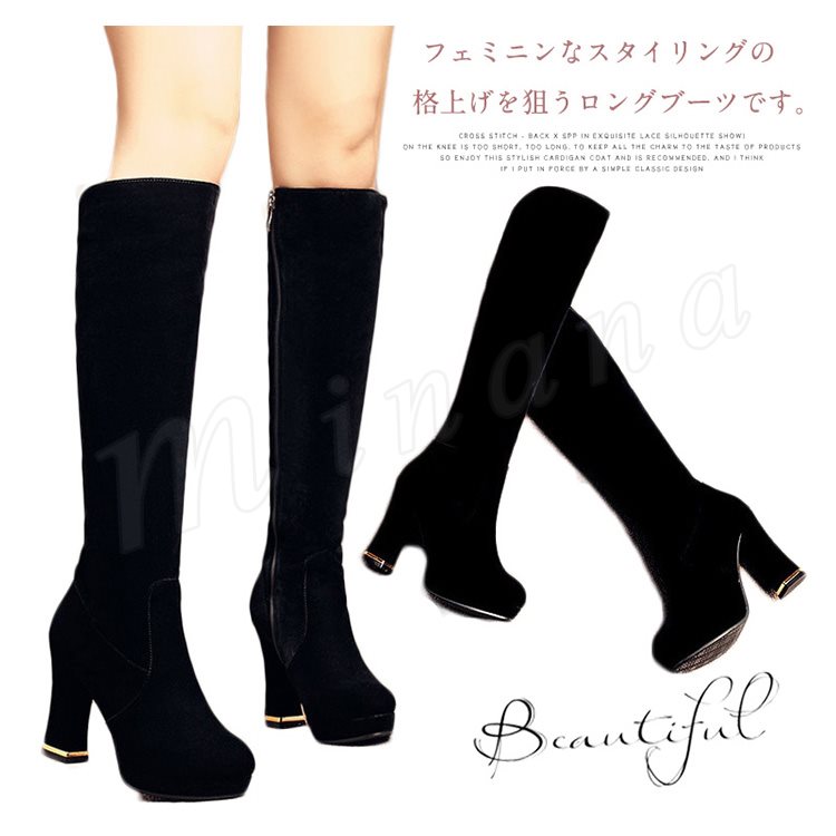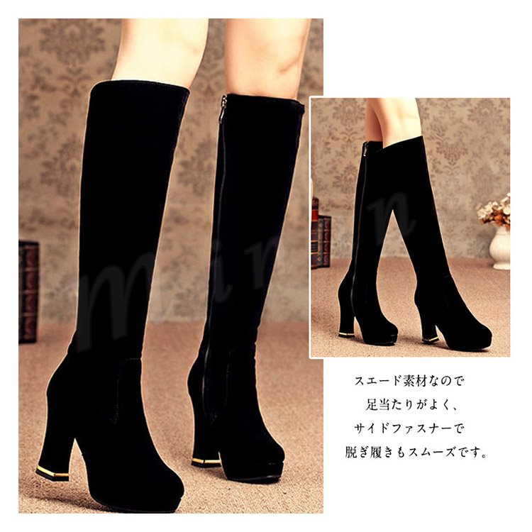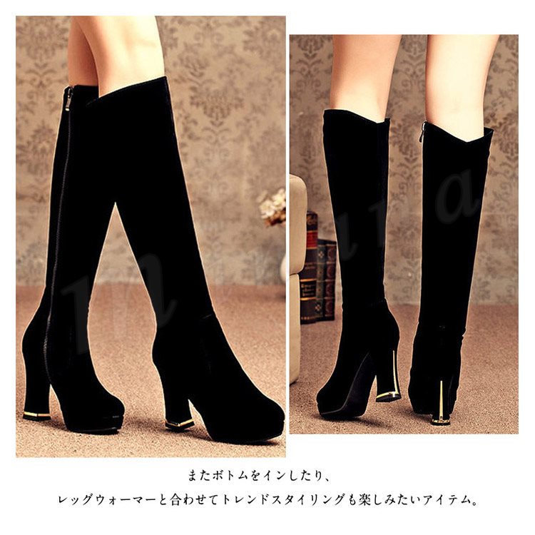 | フェミニンなスタイリングの格上げを狙うロングブーツです。 スエード素材なので足当たりがよく、サイドファスナーで脱ぎ履きもスムーズです。 プラットフォームとやや太いヒールなので高いヒールでも歩きやすいです。 またボトムをインしたり、レッグウォーマーと合わせてトレンドスタイリングも楽しみたいアイテム。 | |