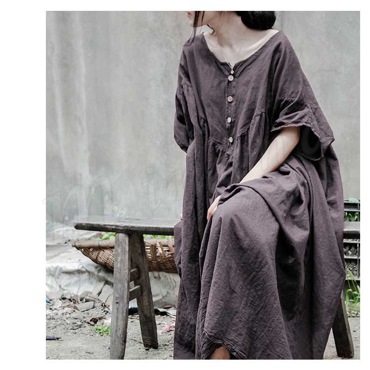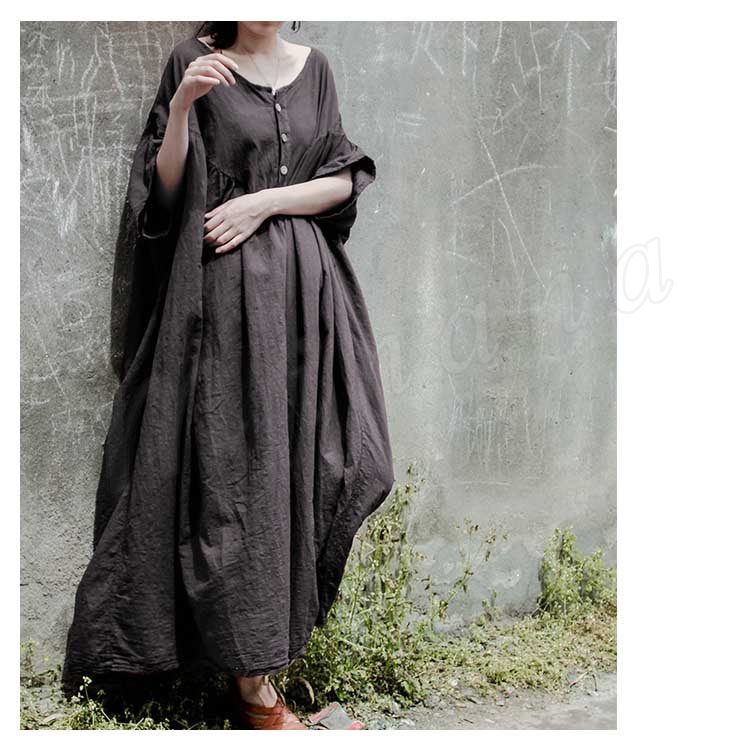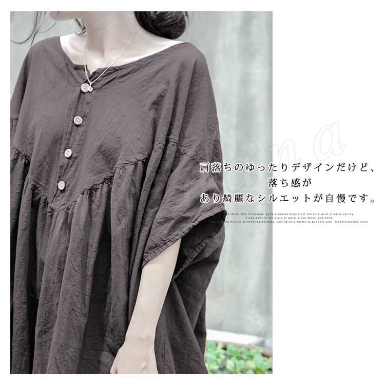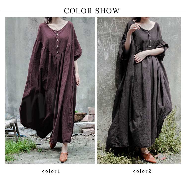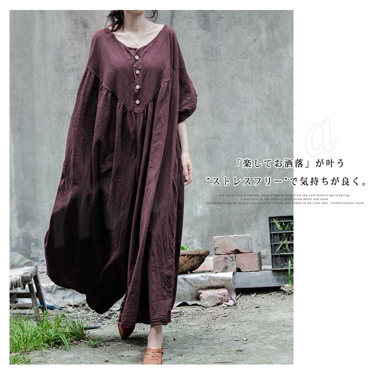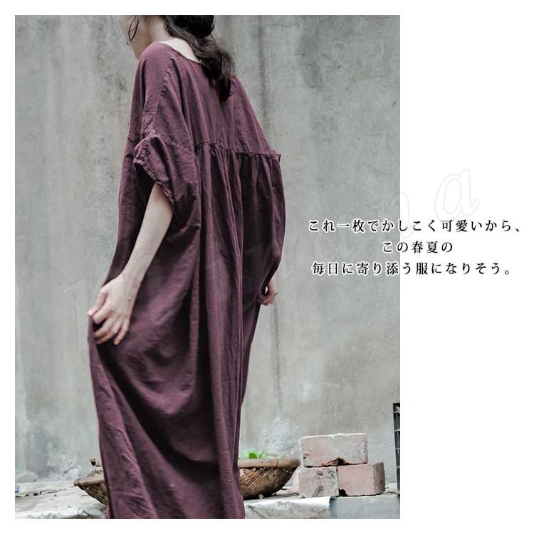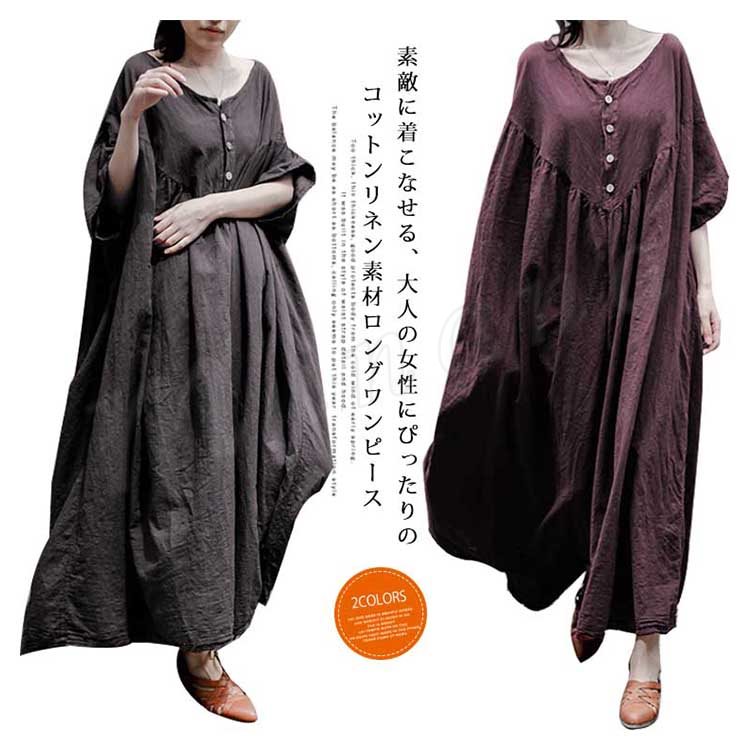 コットンリネン好きにはたまらない!コットンリネン素材 ロングワンピース ナチュラル服 ワンピース ロング丈 マキシ丈 半袖 5分袖 ゆったり 大きサイ