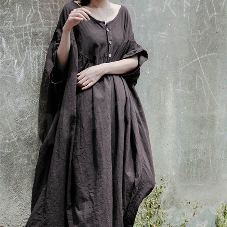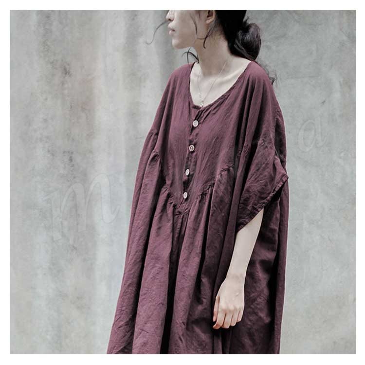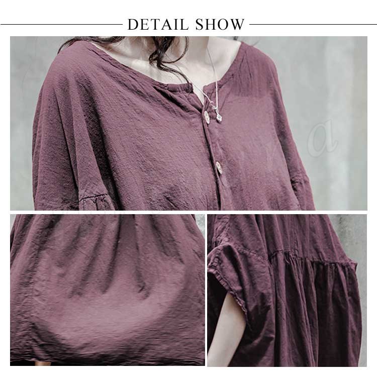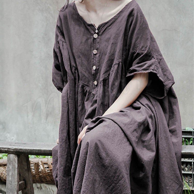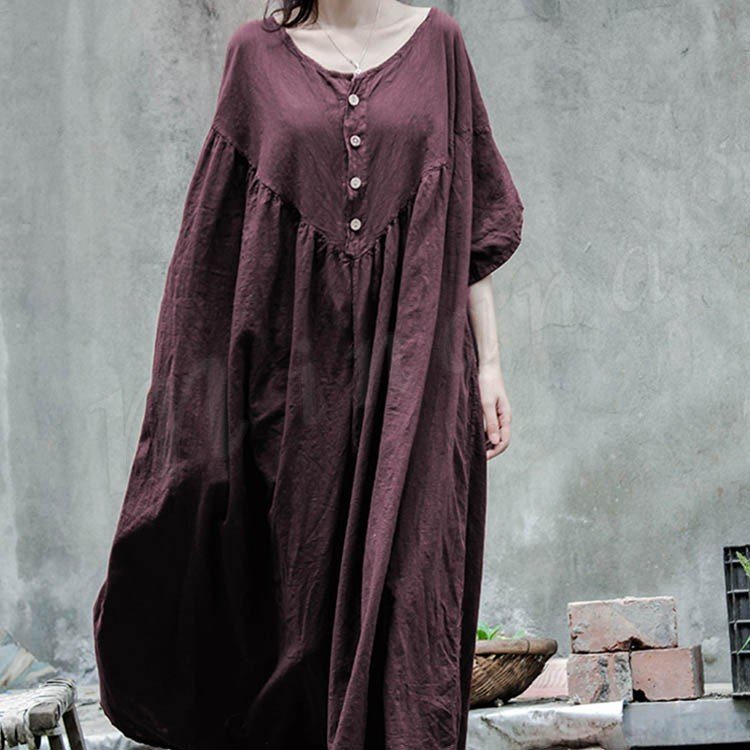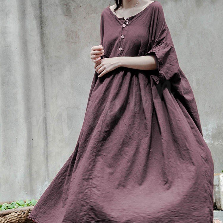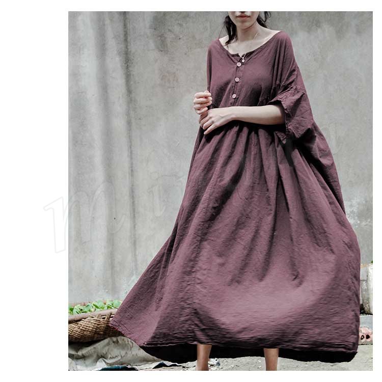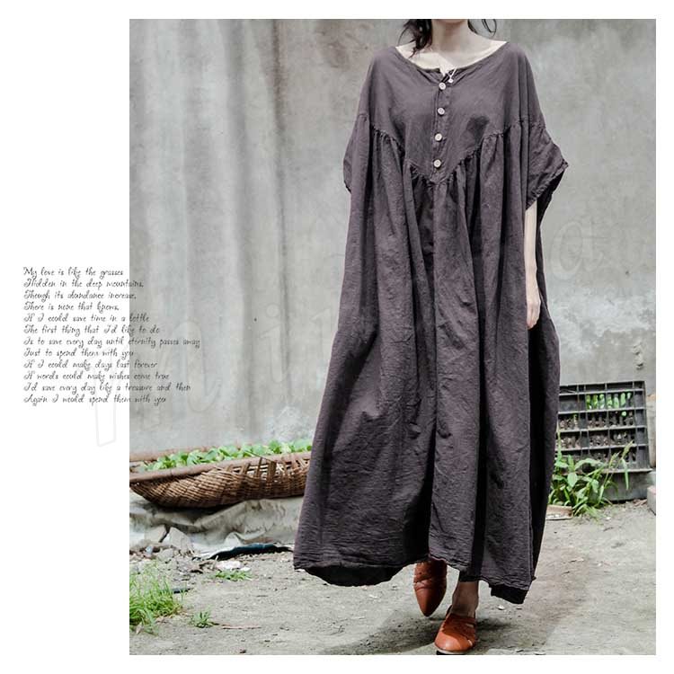 コットンリネン好きにはたまらない!コットンリネン素材 ロングワンピース ナチュラル服 ワンピース ロング丈 マキシ丈 半袖 5分袖 ゆったり 大きサイ