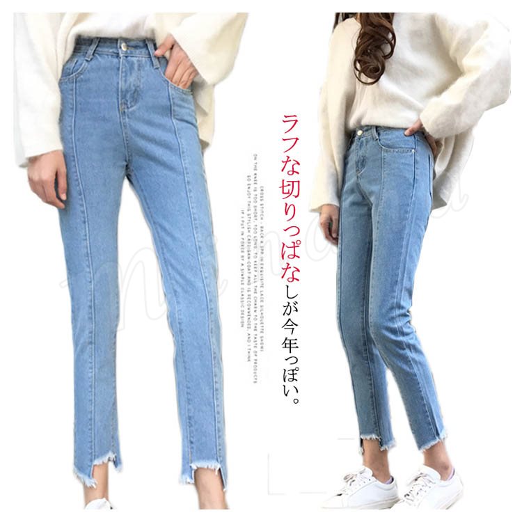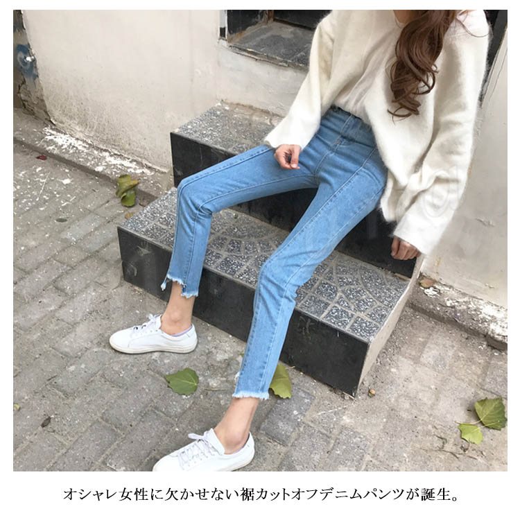 オシャレ女性に欠かせない裾カットオフデニムパンツが誕生。