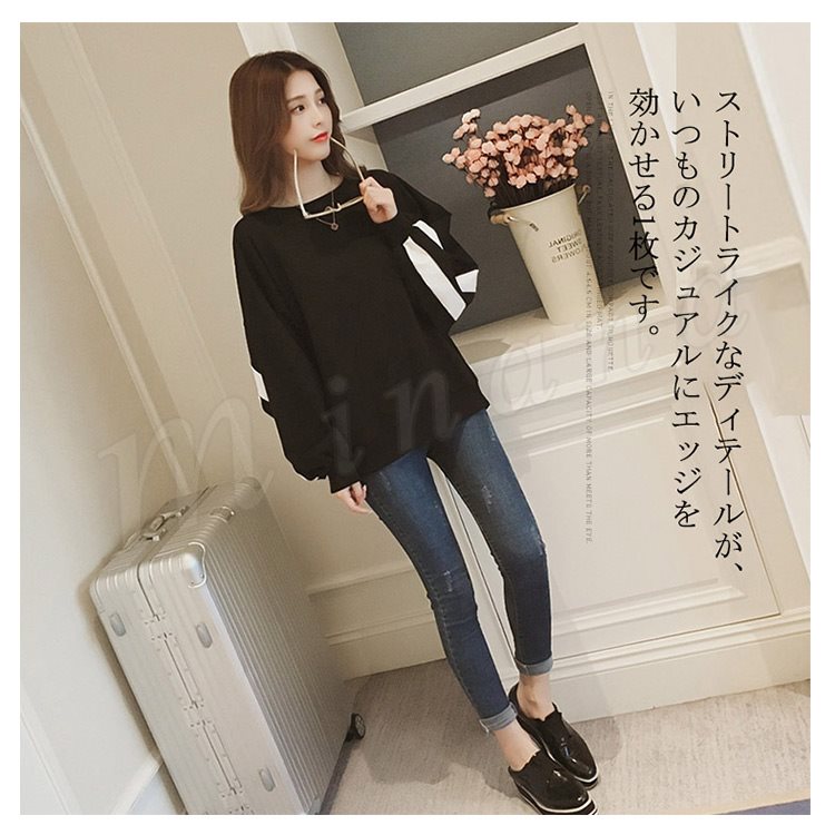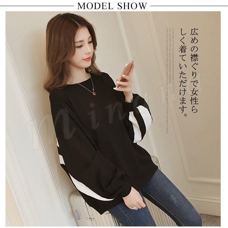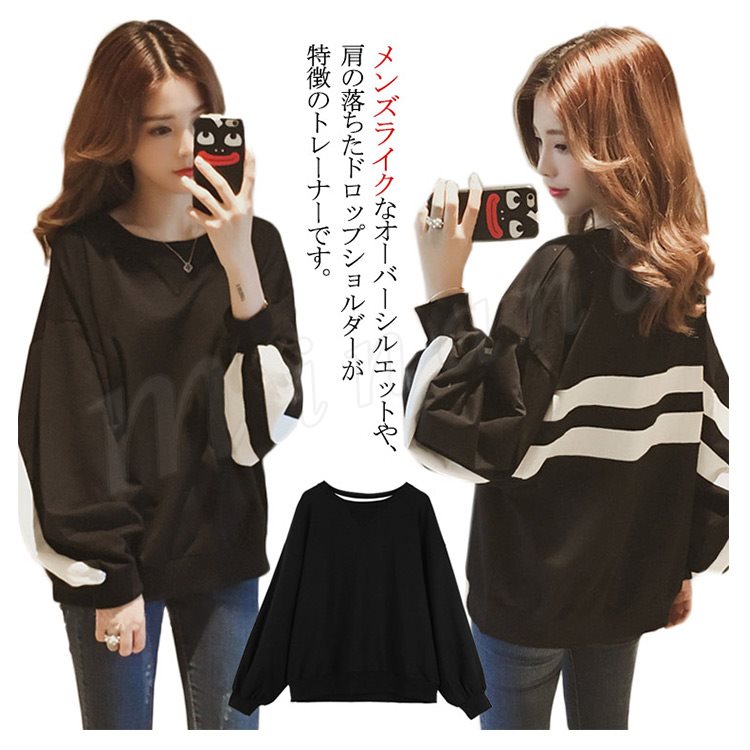 | メンズライクなオーバーシルエットや、肩の落ちたドロップショルダーが特徴のトレーナーです。 広めの襟ぐりで女性らしく着ていただけます。 バックや袖の配色がアクセントになり、きれいめスタイルに合わせればこなれ感のある着こなしに。 ストリートライクなディテールが、いつものカジュアルにエッジを効かせる1枚です。 | |