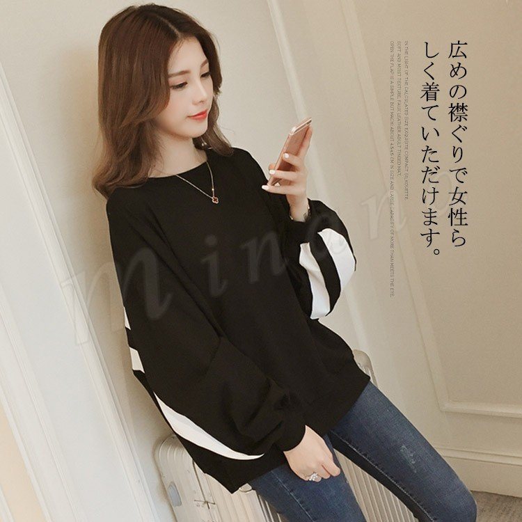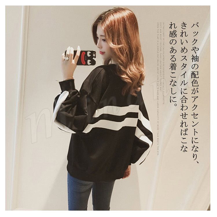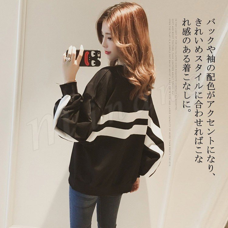 トレーナー レディース パフスリーブ ボリューム袖 長袖 トップス カットソー バイカラー HS カジュアル ドルマン 新作 ビッグシルエット オーバ