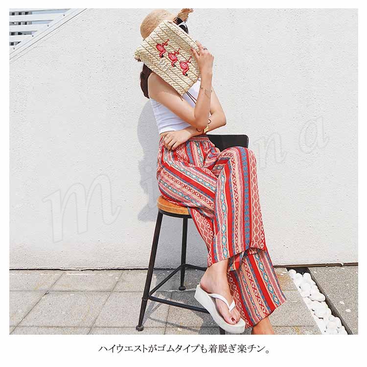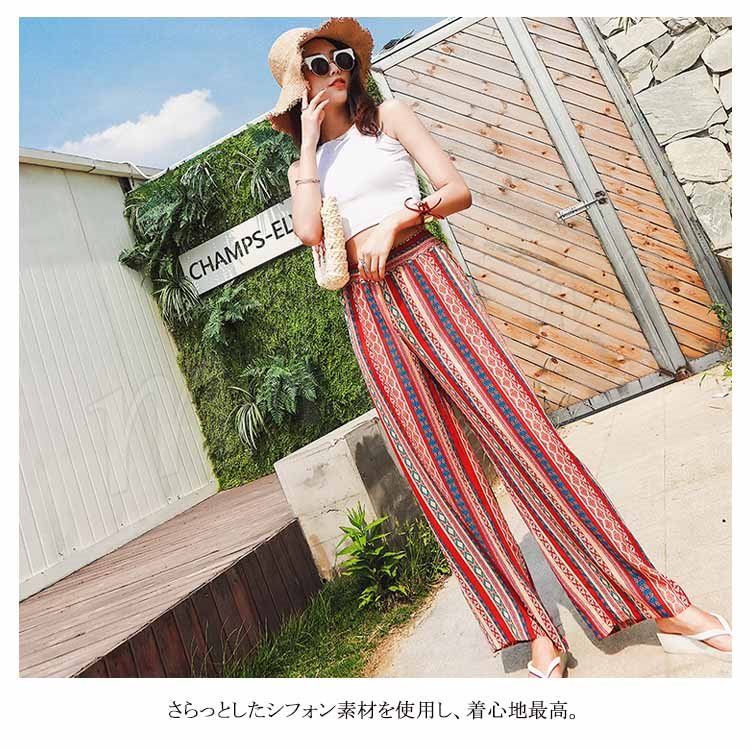 シフォンパンツ ワイドパンツ ガウチョパンツ レディース ワイド ロングパンツ 総柄 シフォン プリント リゾートパンツ カジュアル ウエストゴム 夏