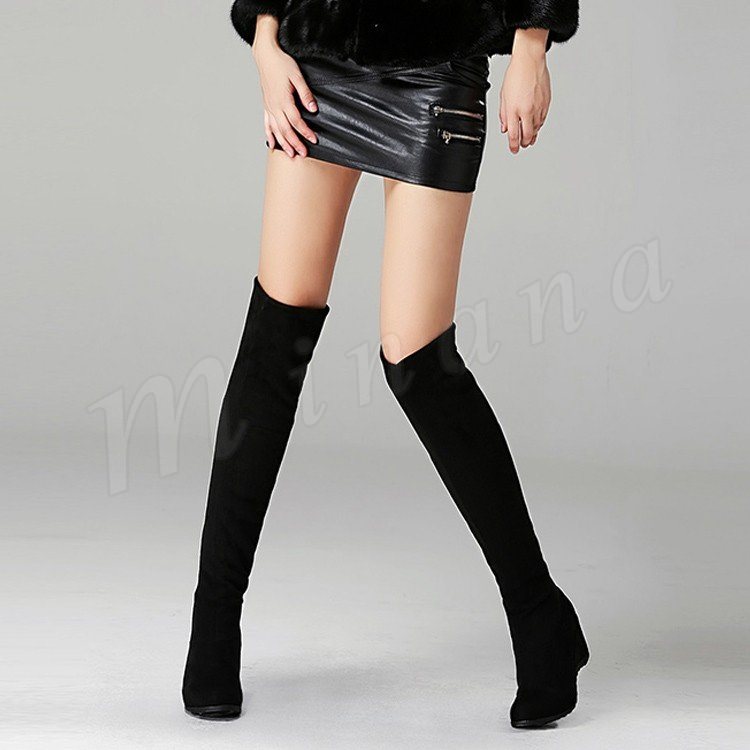 ブーツ ニーハイブーツ インヒール ロングブーツ 大きいサイズ スエード ブーツ ニーハイオーバーニーハイ ストレッチ 裏ボア あったか 秋冬 レディ