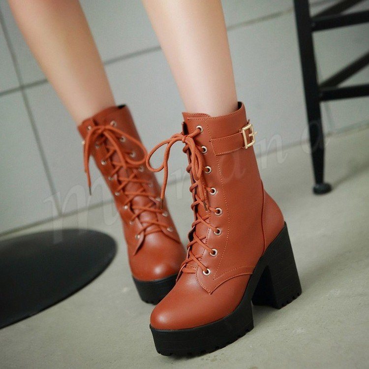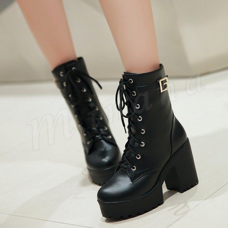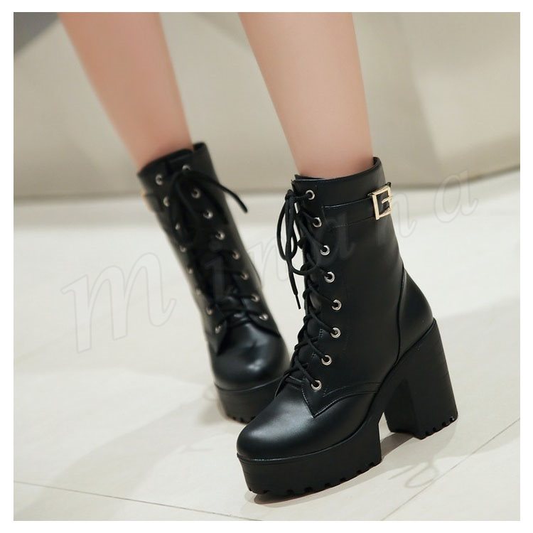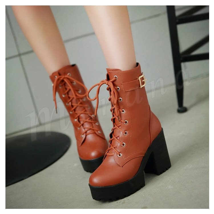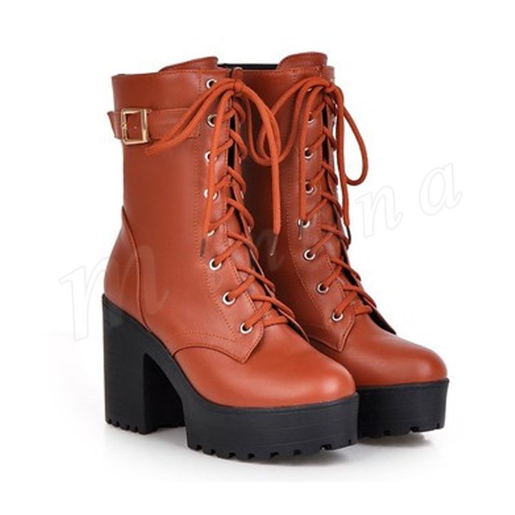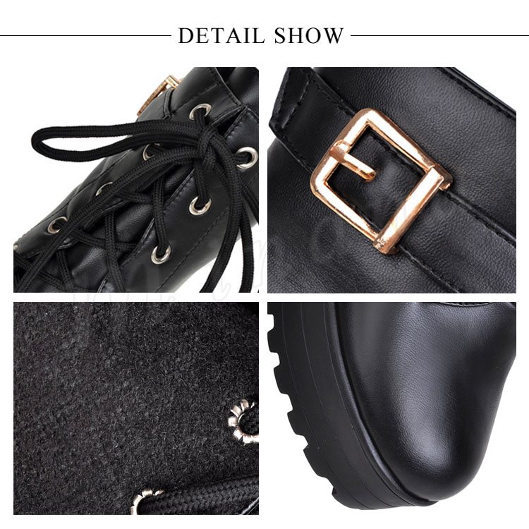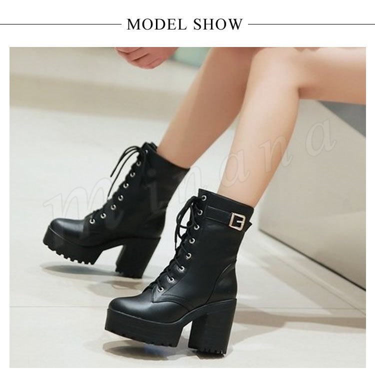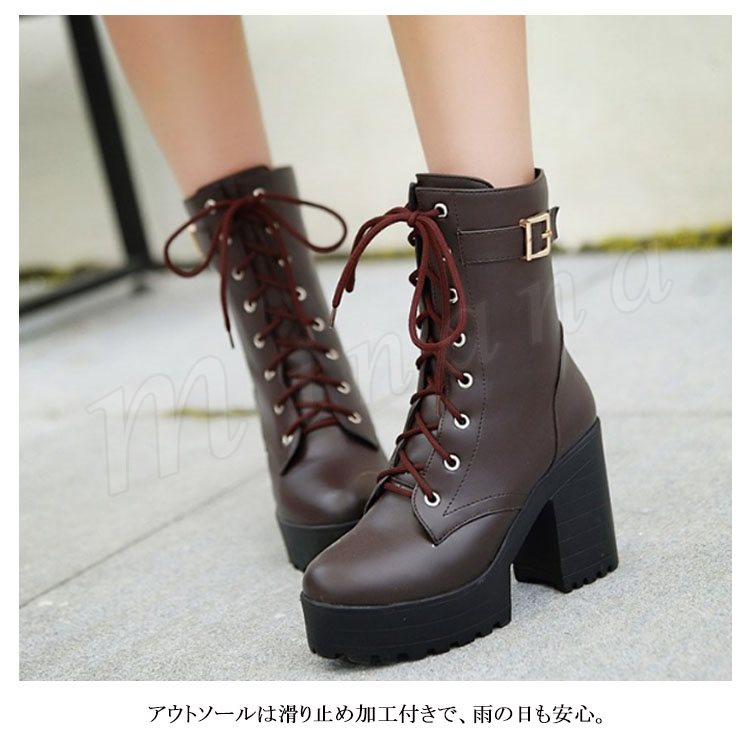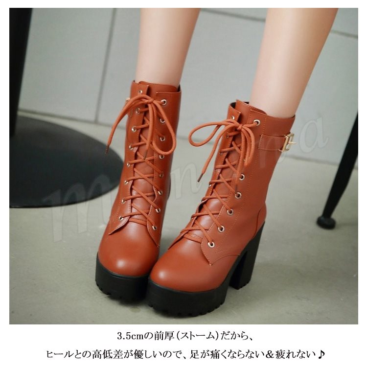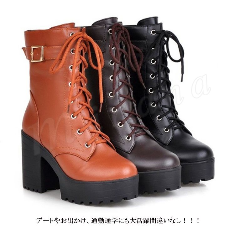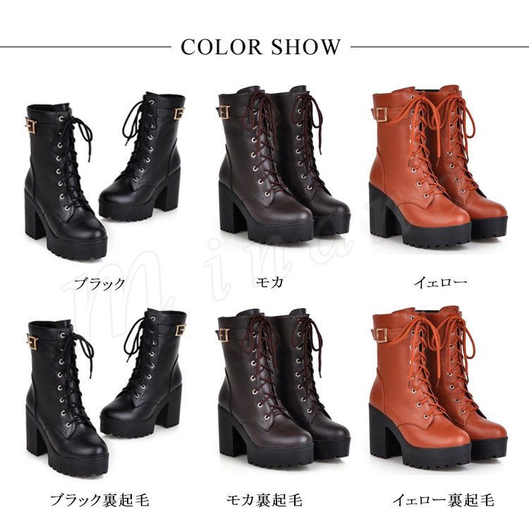 【裏起毛/裏起毛なし】大きサイズ ショートブーツ レディース ブーツ シューズ 女性靴 ハイヒール レースアップ 靴 厚底 太ヒール マーテ