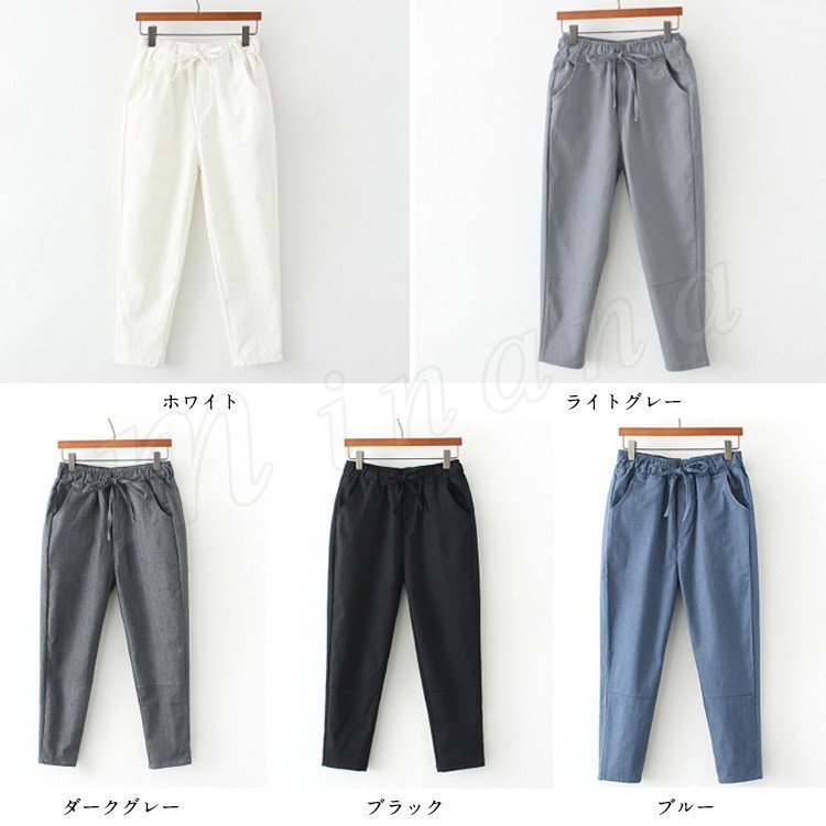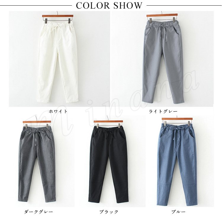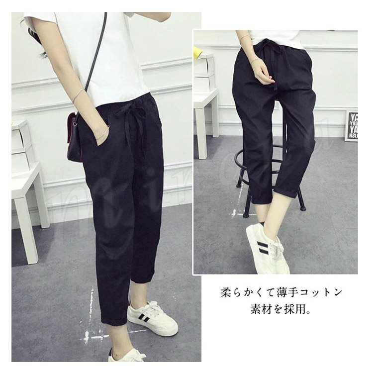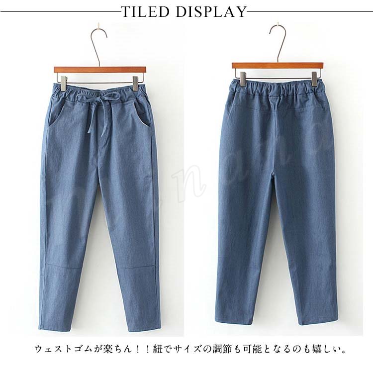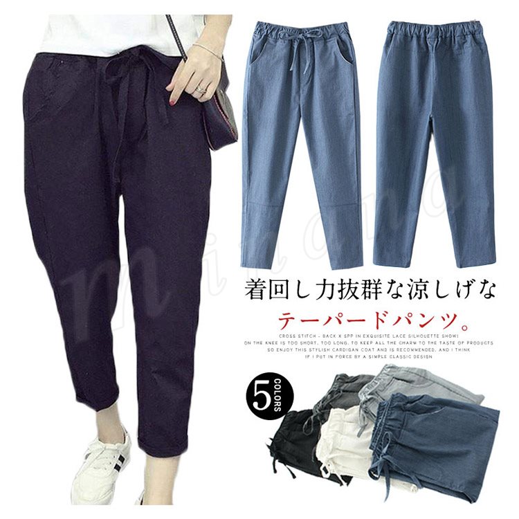 涼しげ薄手綿素材で穿き心地抜群!テーパードパンツ イージーパンツ 9分丈 くるぶし丈パンツ コットン パンツ ウエストゴム 春夏 テーパード