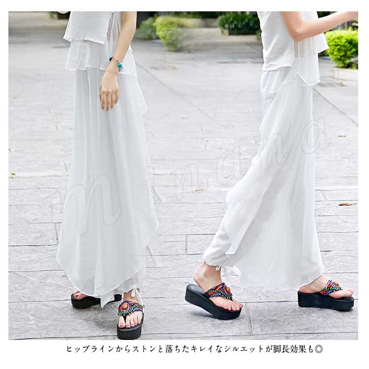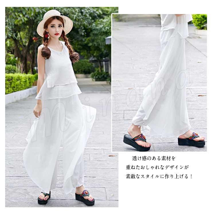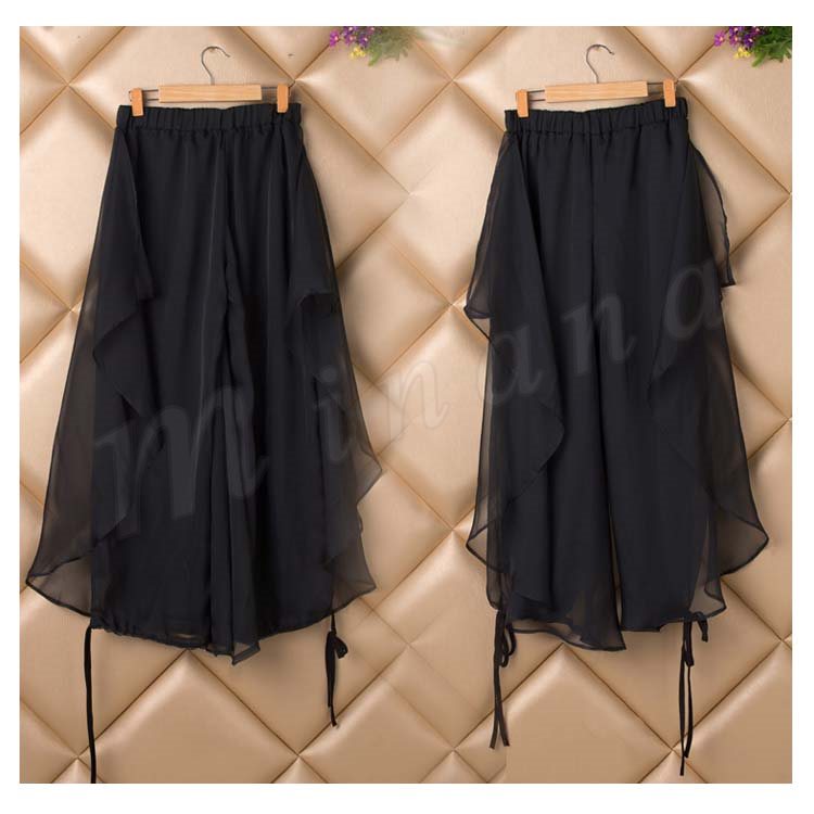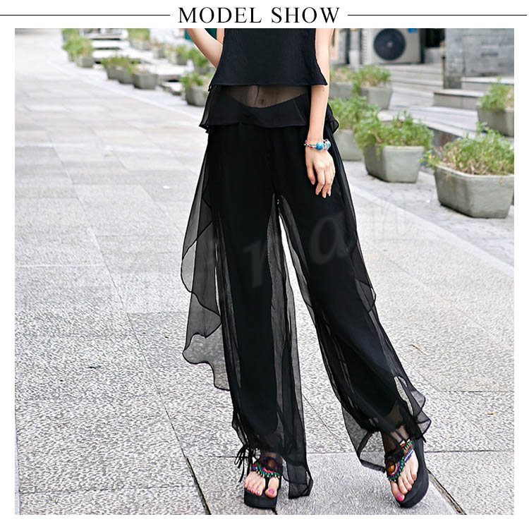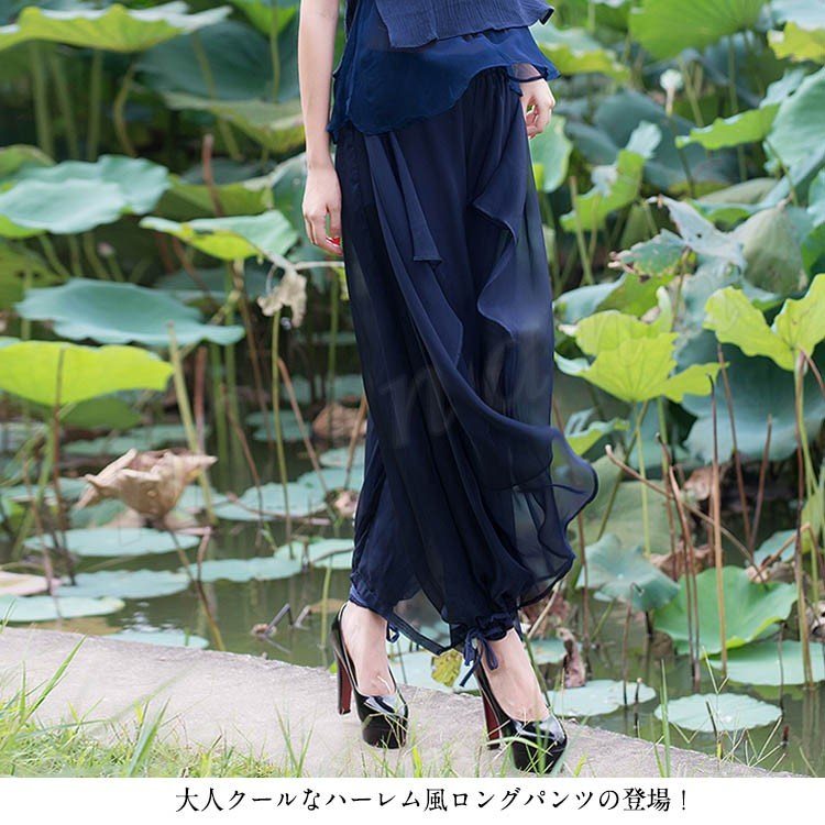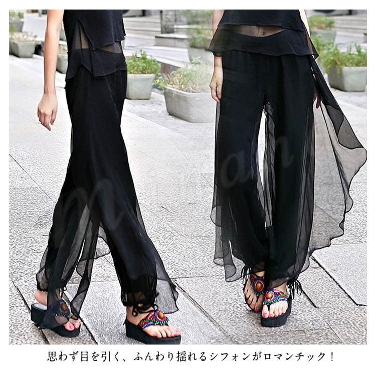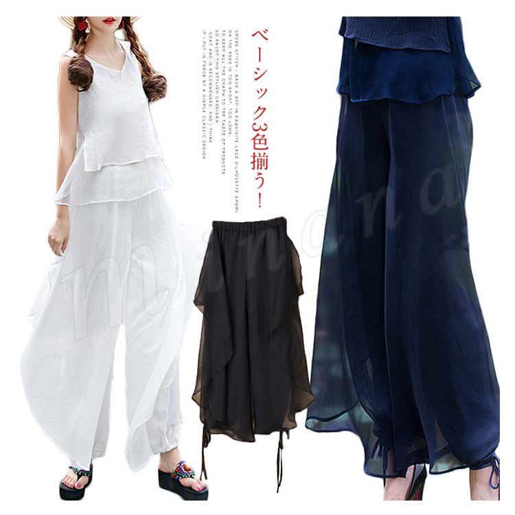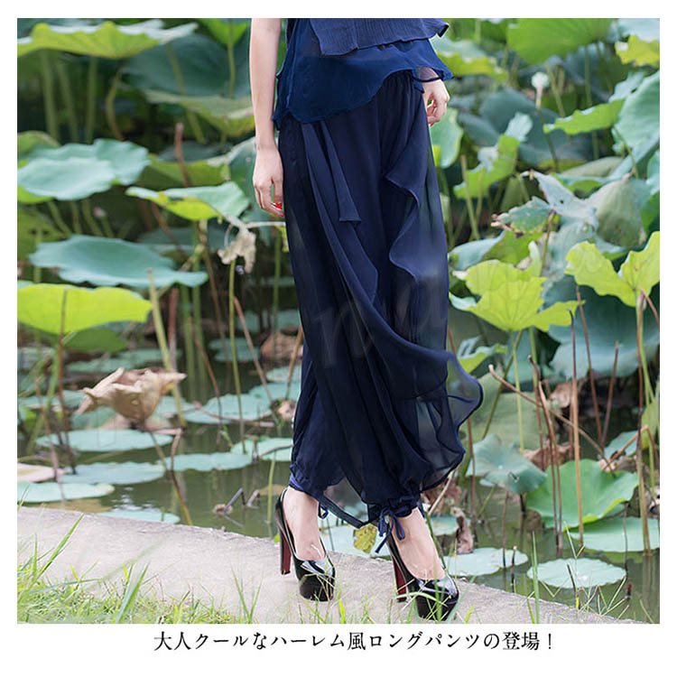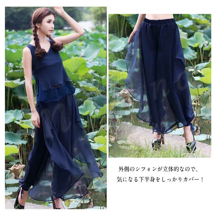 軽くてふんわりとしたシルエ。ガウチョパンツ シフォン ロングパンツ レディース ロング丈 ワイドパンツ ヨガパンツ ダンス衣装 フレアパンツ