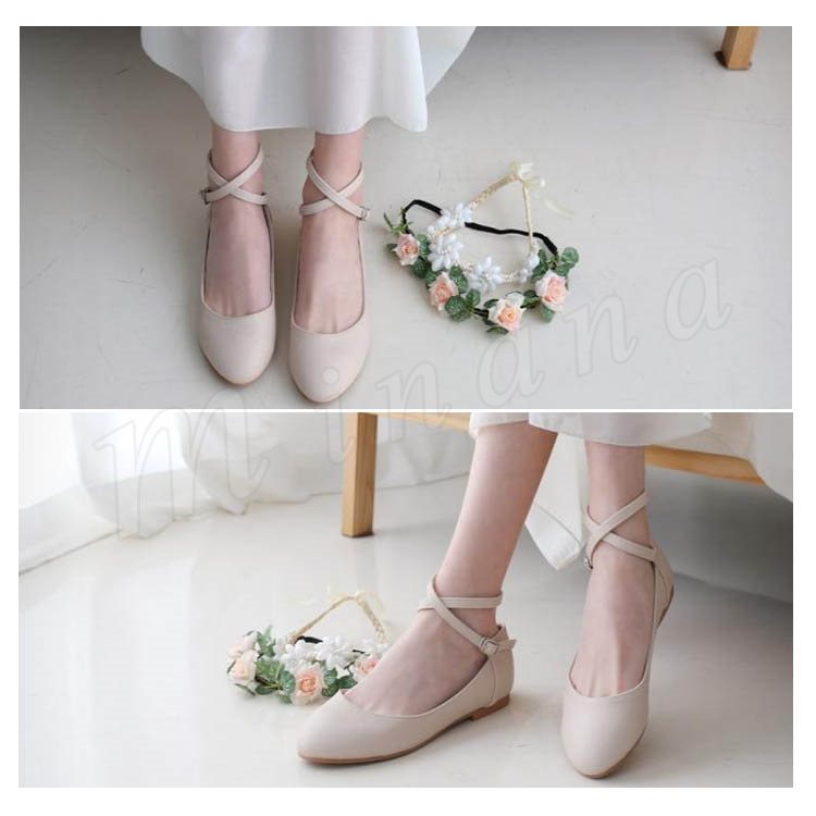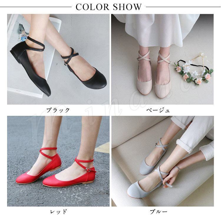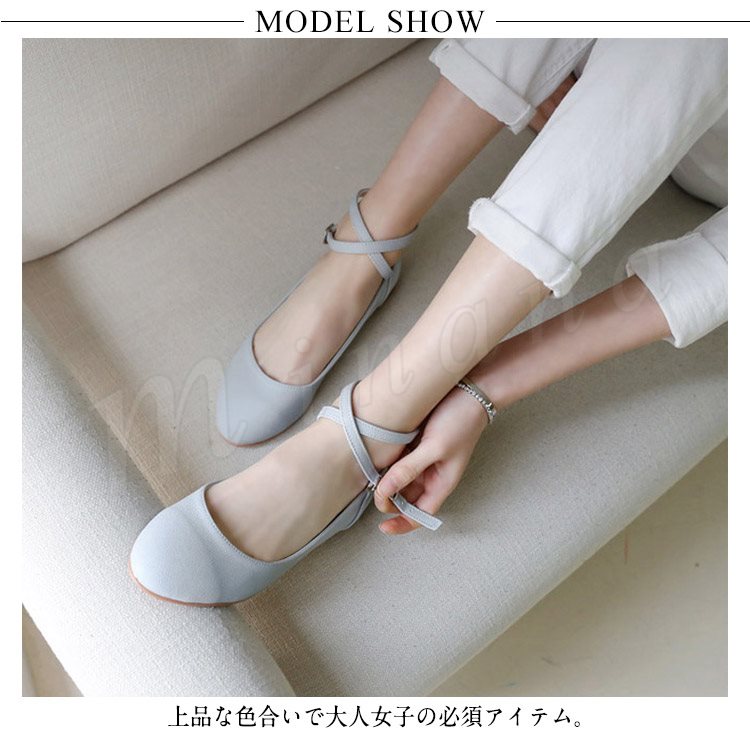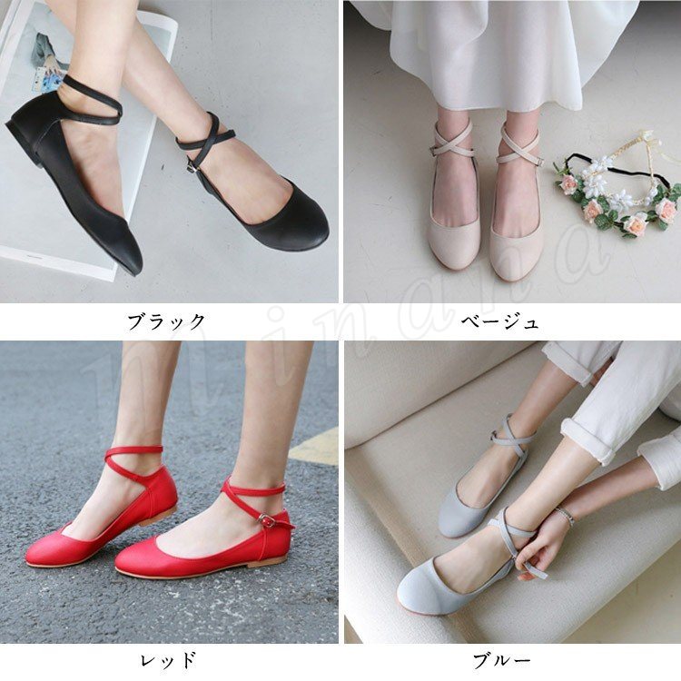クロスストラップパンプス レディース パンプス 痛くない ぺたんこ ぺたんこ靴 バレエシューズ クロスベルト ラウンドトゥ パンプス アンク
