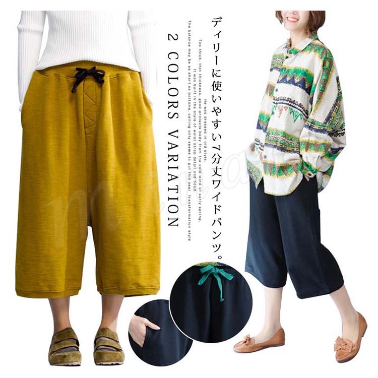 | ディリーに使いやすい7分丈ワイドパンツ。 ボディラインを拾わないワイドシルエットのデザインが今年らしいスタイルに仕上げます。 下半身をすっぽり包み込み、気になる部分の体型カバーにも役立ちそう。 薄くすぎず厚くすぎず、程度良い厚さのコットンを採用します。 毎日の着こなしを彩る、ナチュラルな主役級ガウチョをぜひお試しくださいませ。 | |