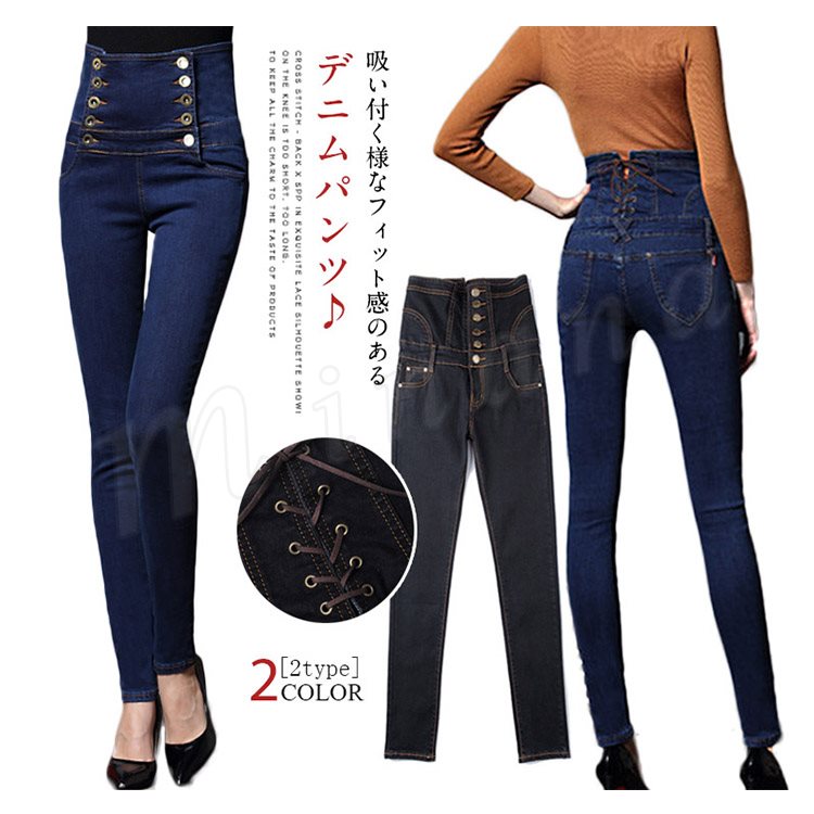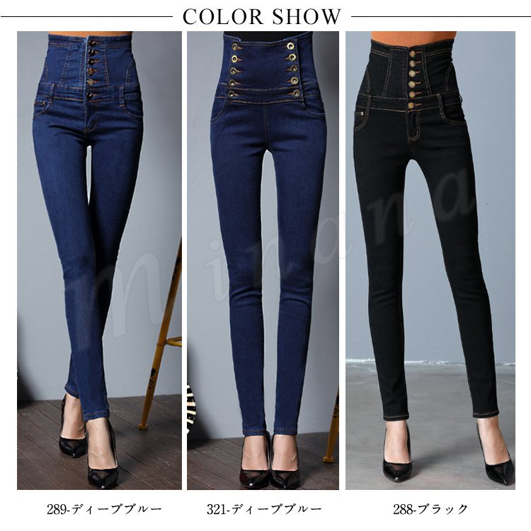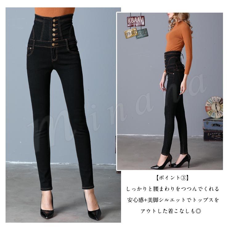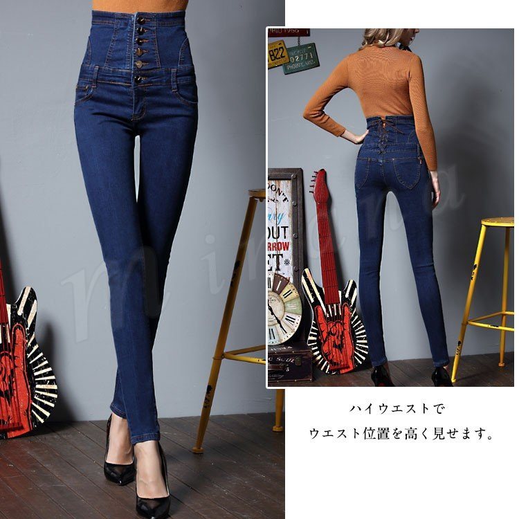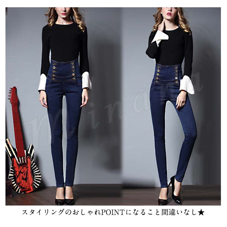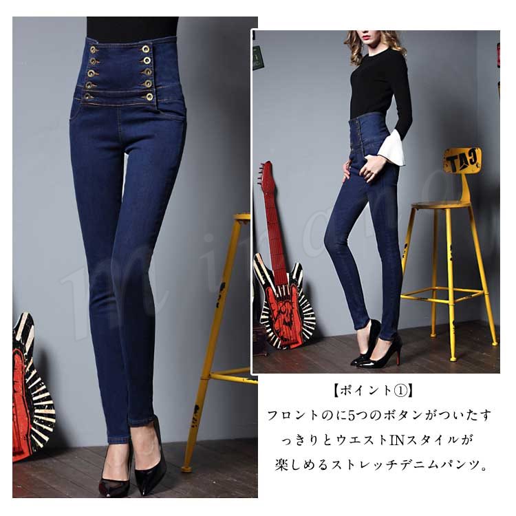[3色展開]スキニーデニム スキニーパンツ ストレッチ レディース フロントボタン ジーンズ デニム ハイウエスト 大きいサイズ パンツ ボ