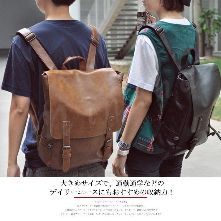 PUレザー リュックサック フェイク レザー リュック メンズ おしゃれ リュック 大容量 通勤 通学 ボックス型 スクエア リュック ディ