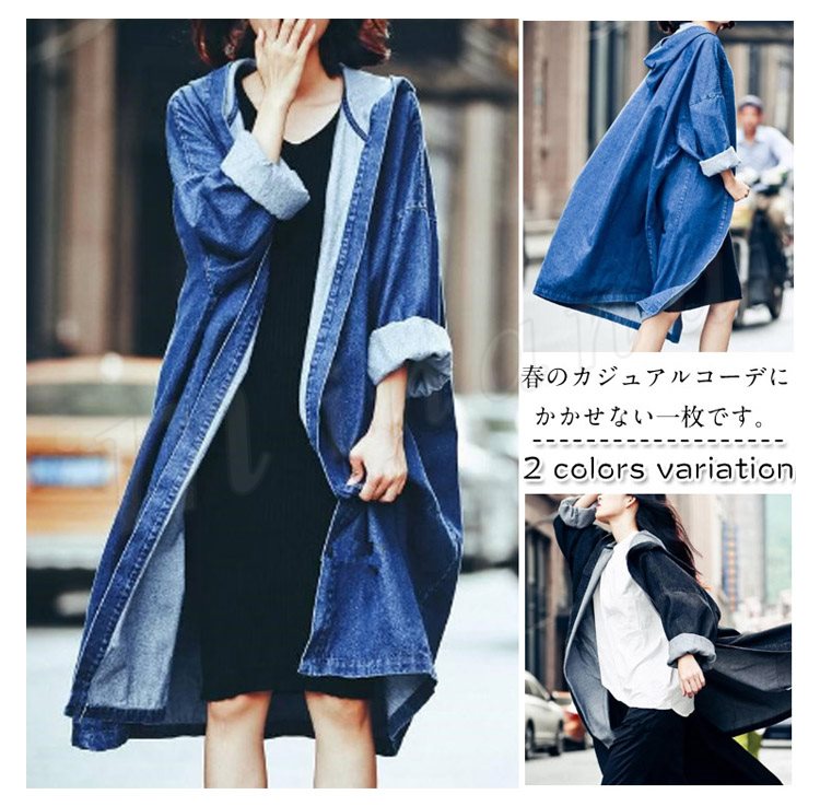 スプリングコート レディース デニムジャケット トレンチコート パーカコート トレンチ フード付きコート ロングコート 春