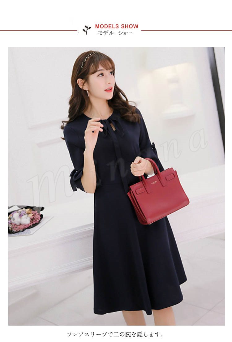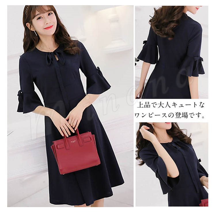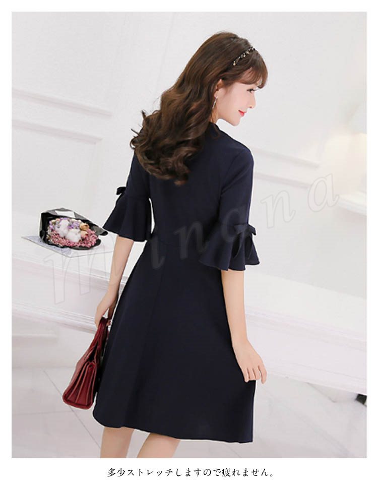 ワンピース フレアスリーブ 五分袖 チュニックワンピ Aライン 春 レディース