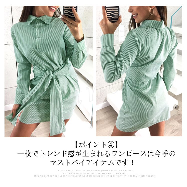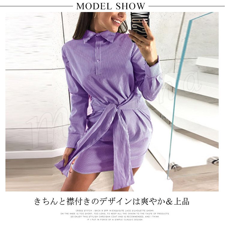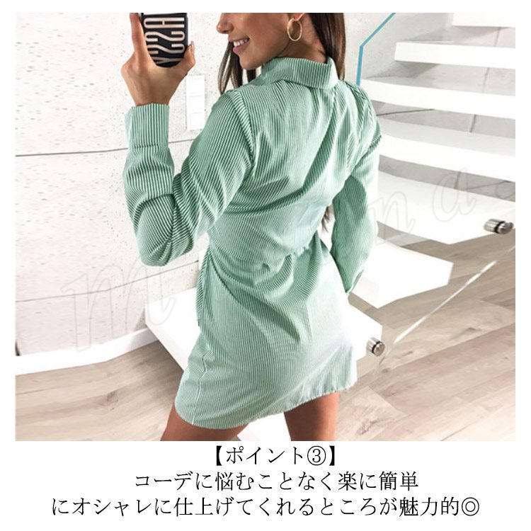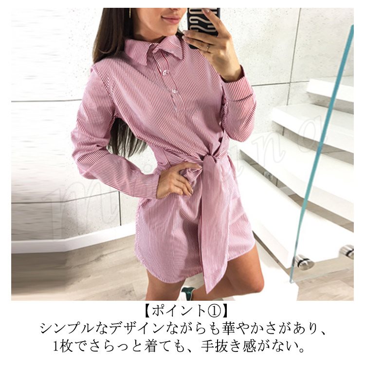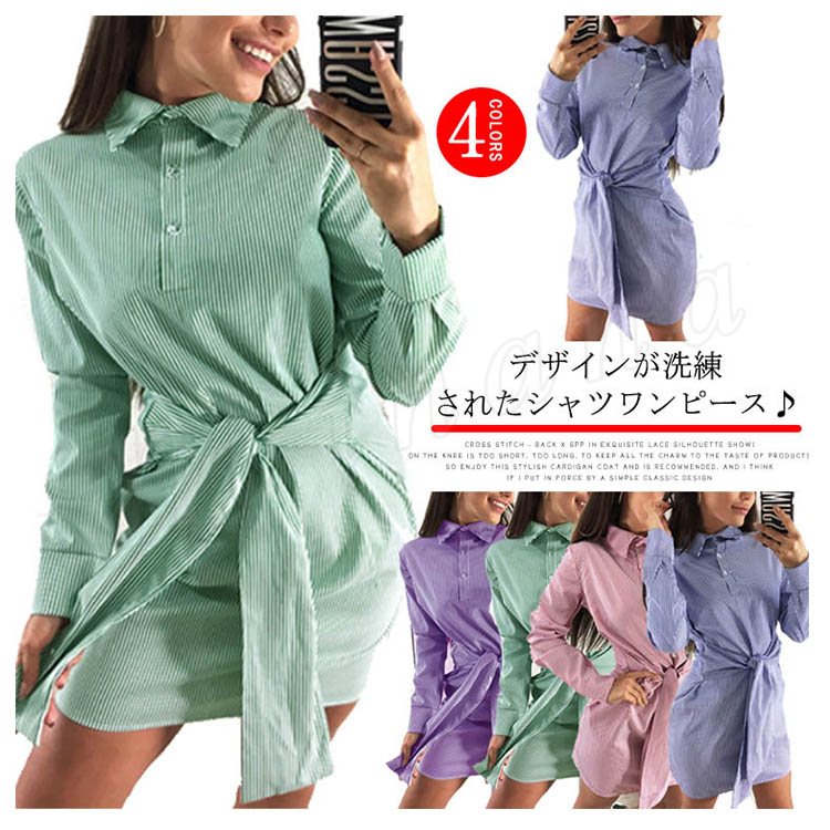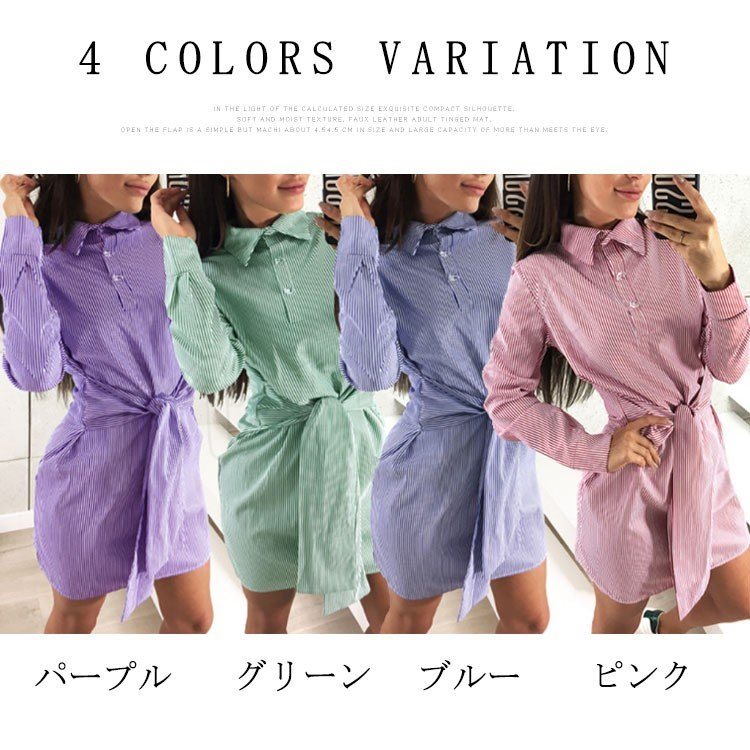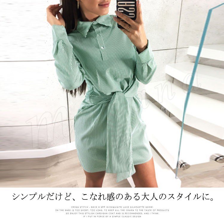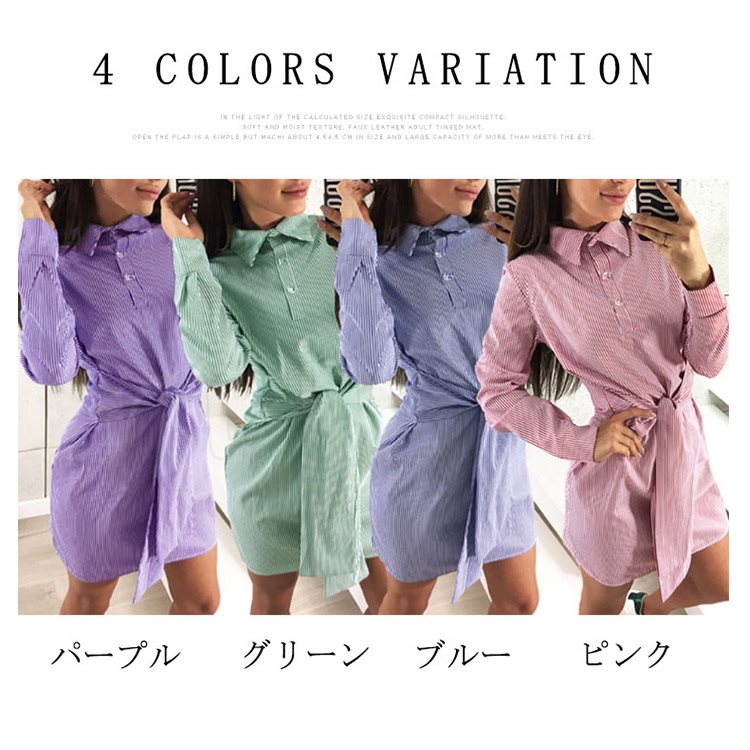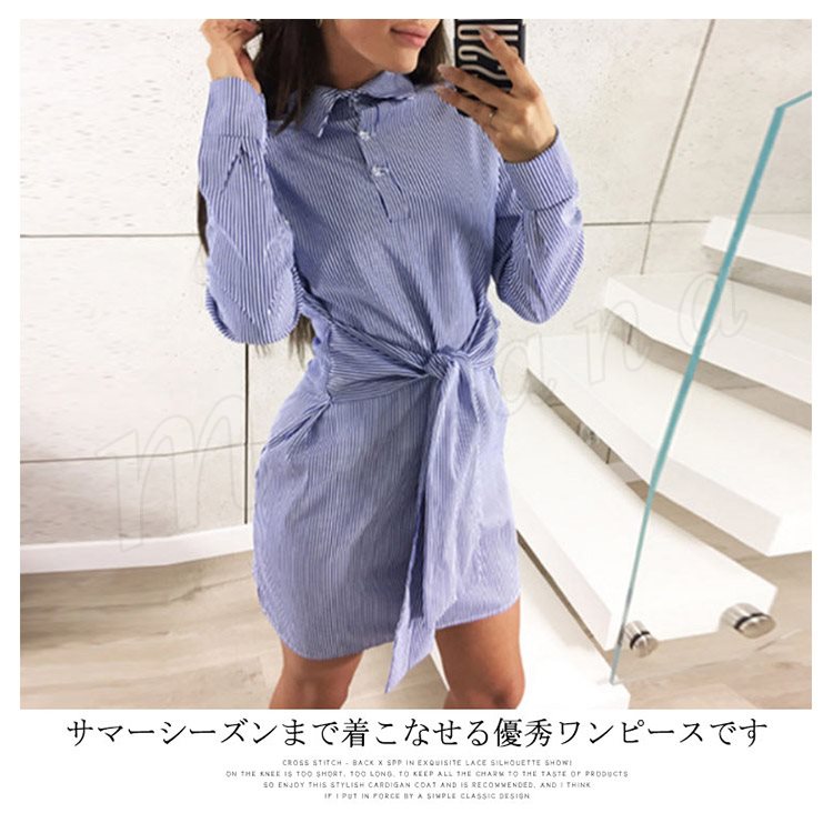 [4色展開]シャツワンピース ワンピース レディース ボーダー 長袖 ショート丈 ゆったり プルオーバートップス 春夏 カジュアル 体型カバ