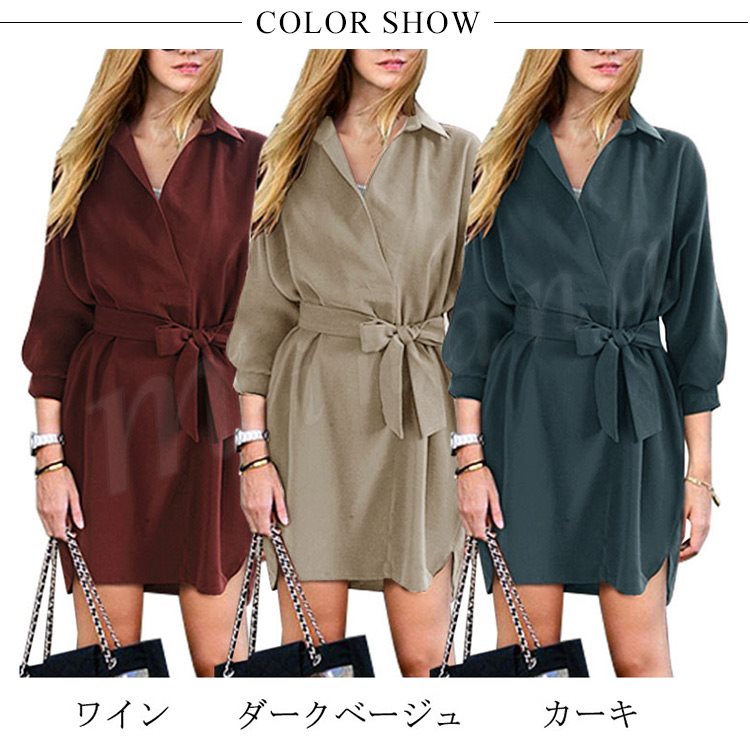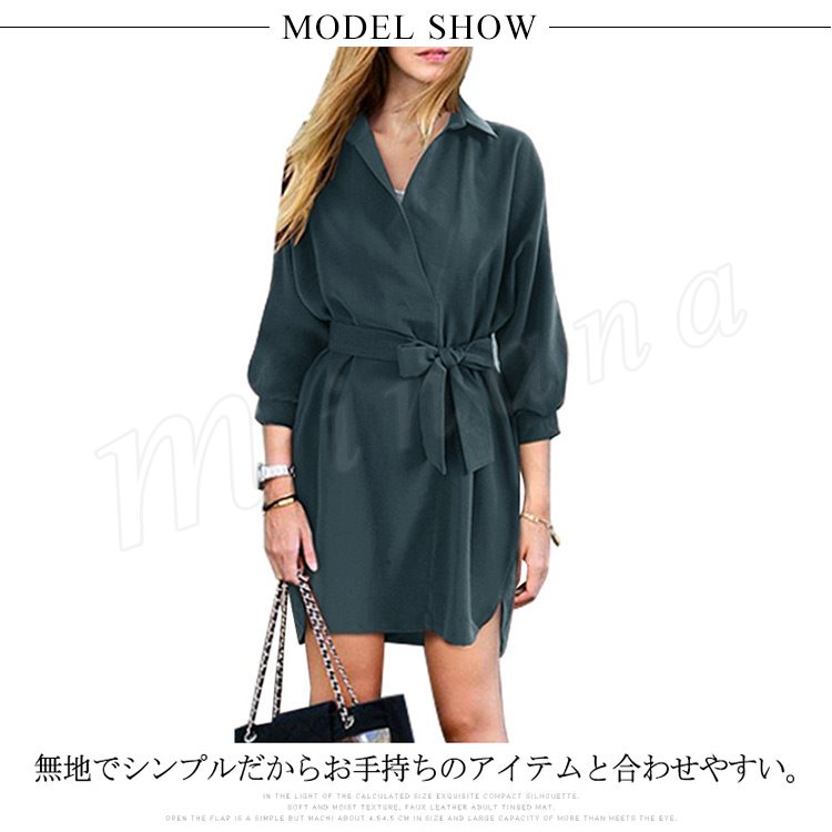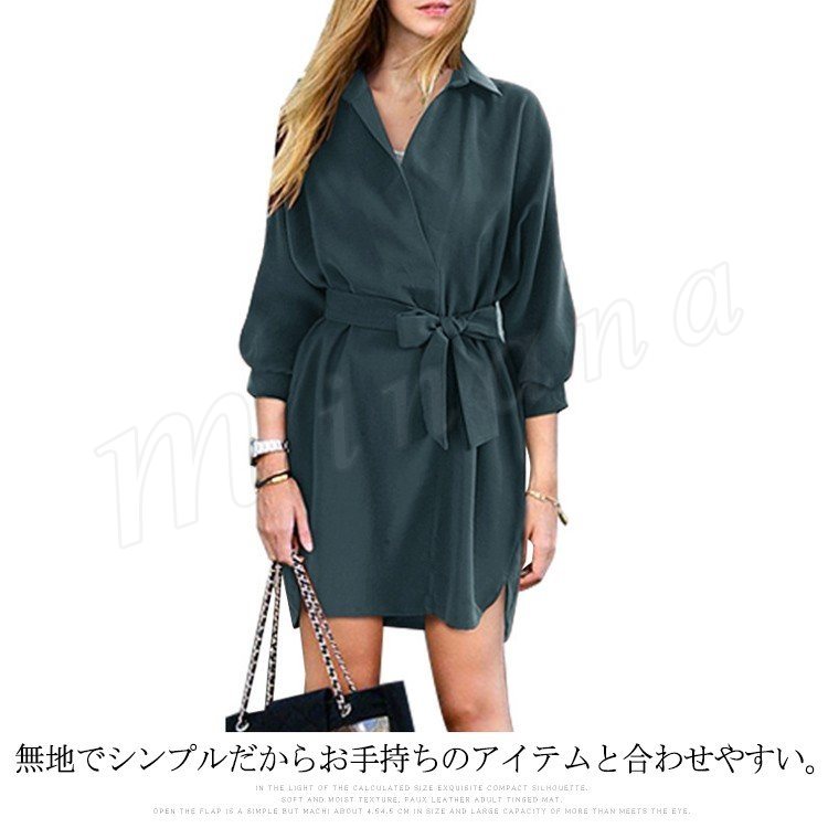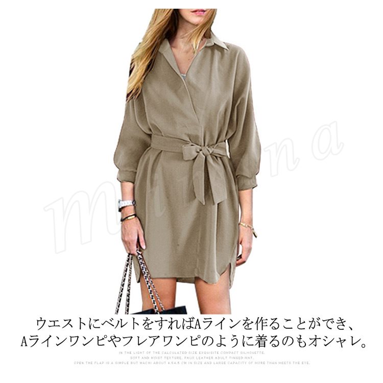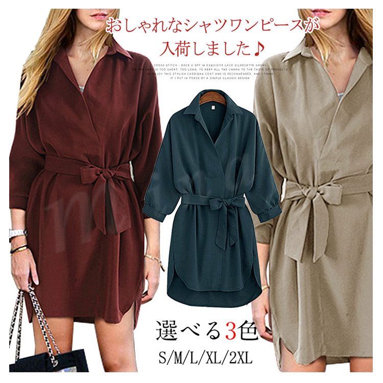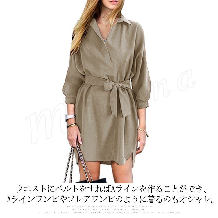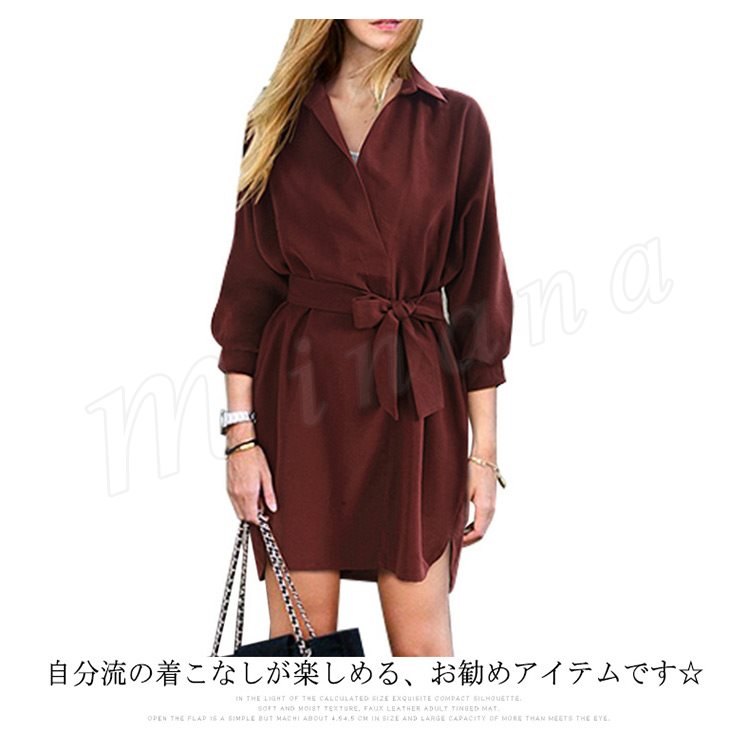 シャツワンピ ロング丈 ワンピース ロングシャツ 7分袖 シャツワンピース レディース 韓国 ファッション ガウンワンピース ウエストマーク