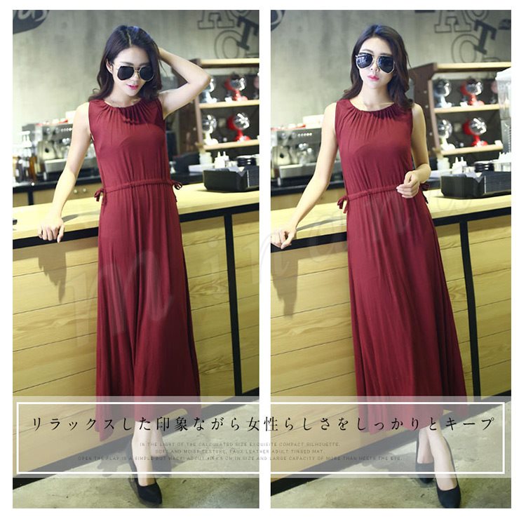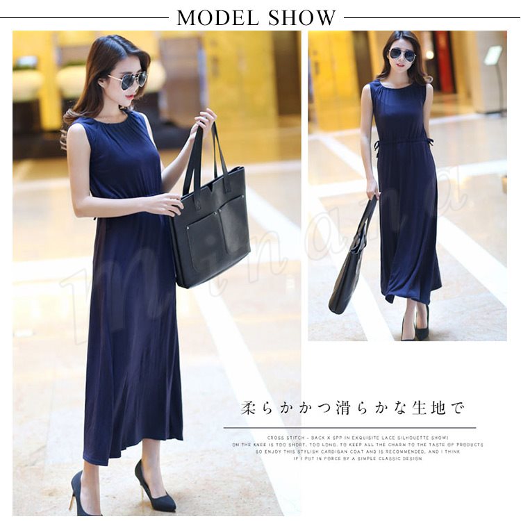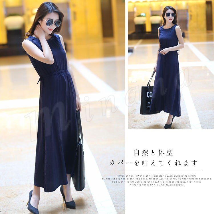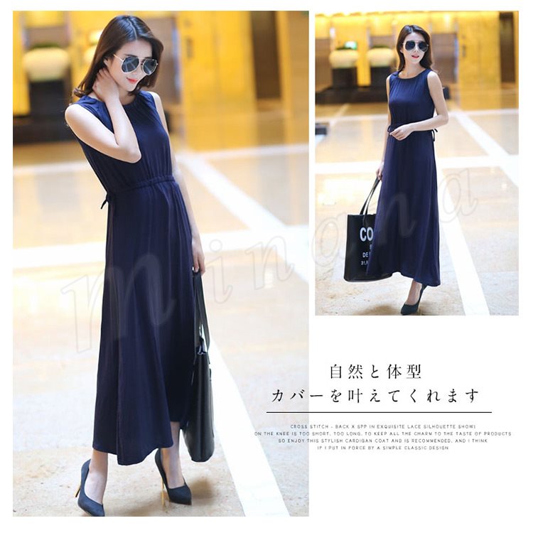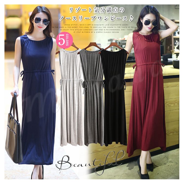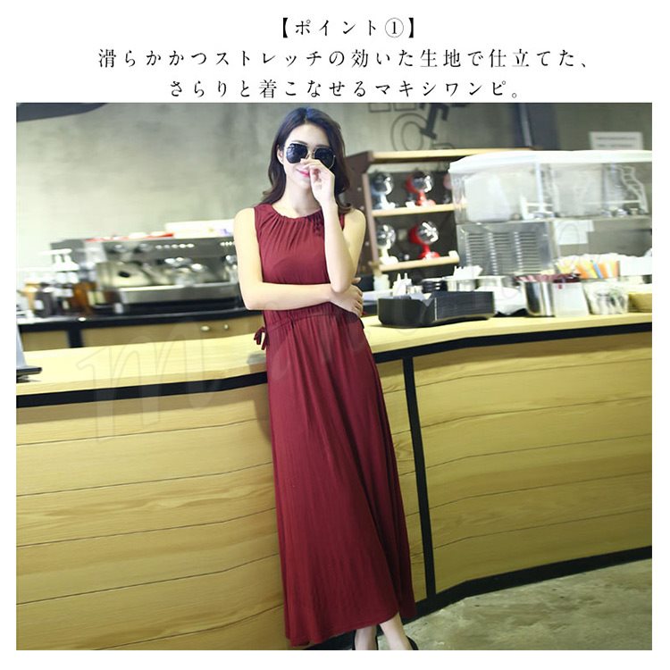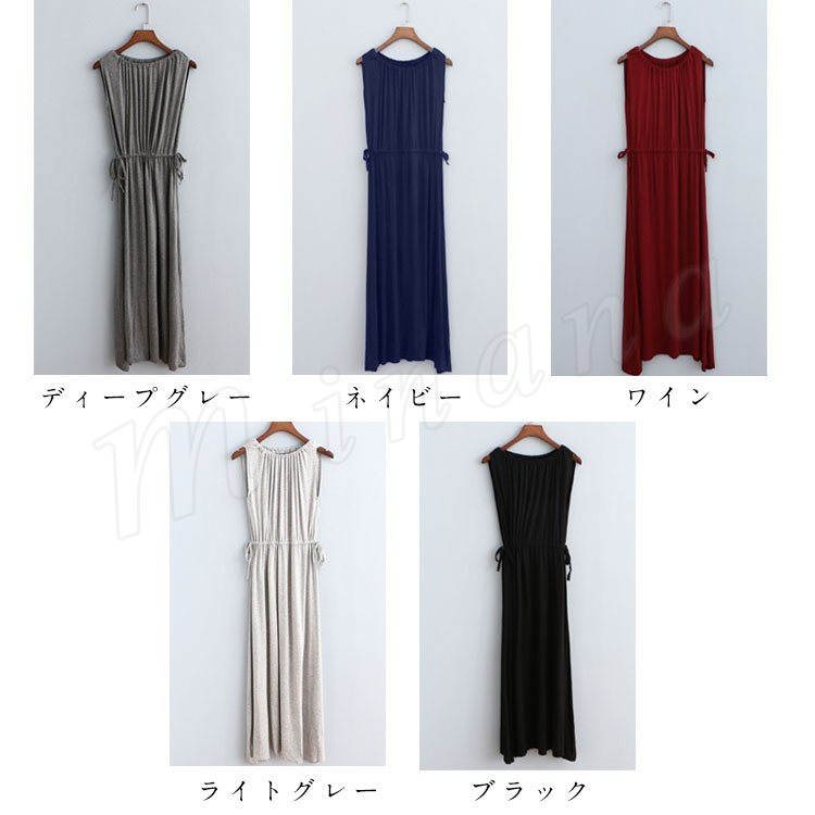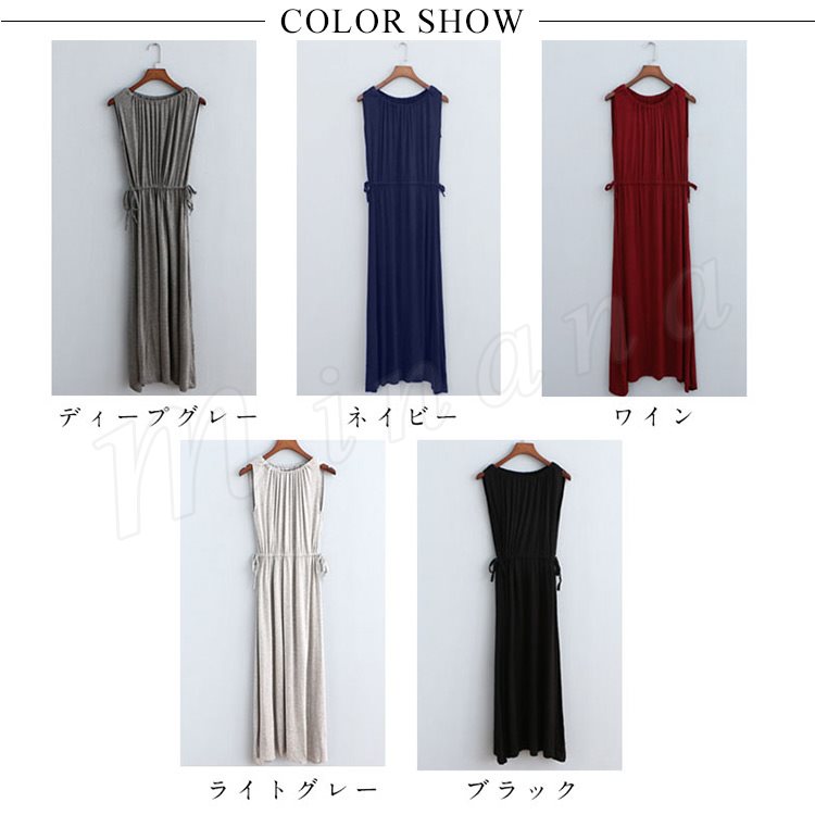 [5色展開]ワンピース レディース ノースリーブ マキシ丈 ロング丈 プルオーバートップス ナイトウェア ルームウェア 部屋着 春夏 体型カ