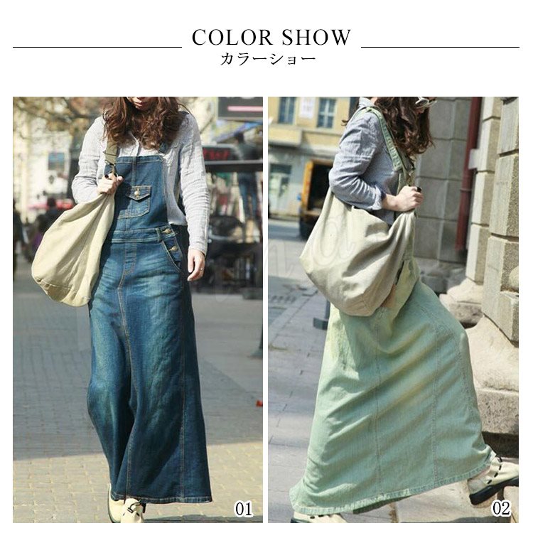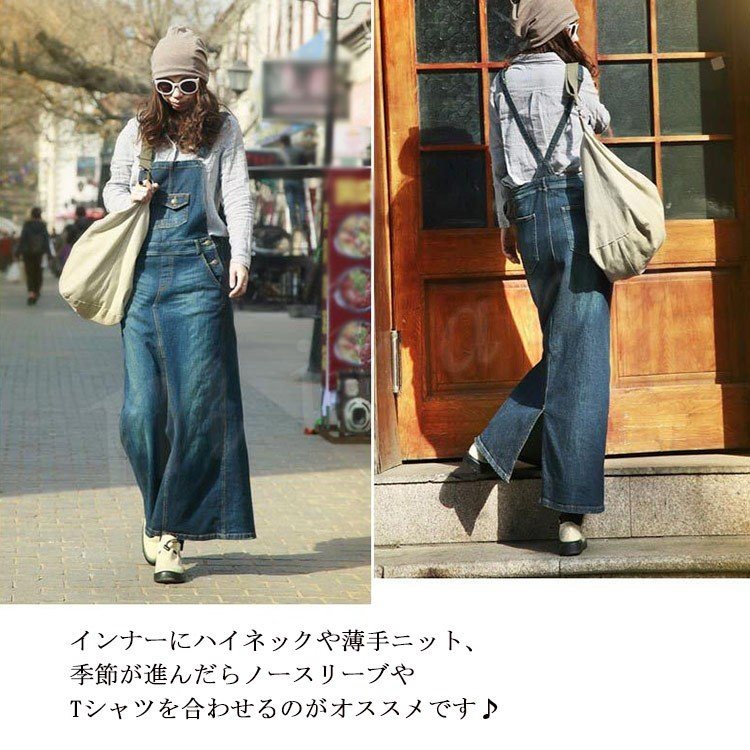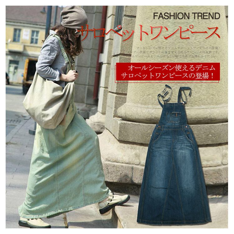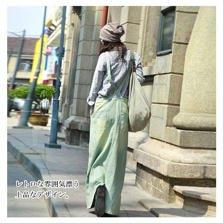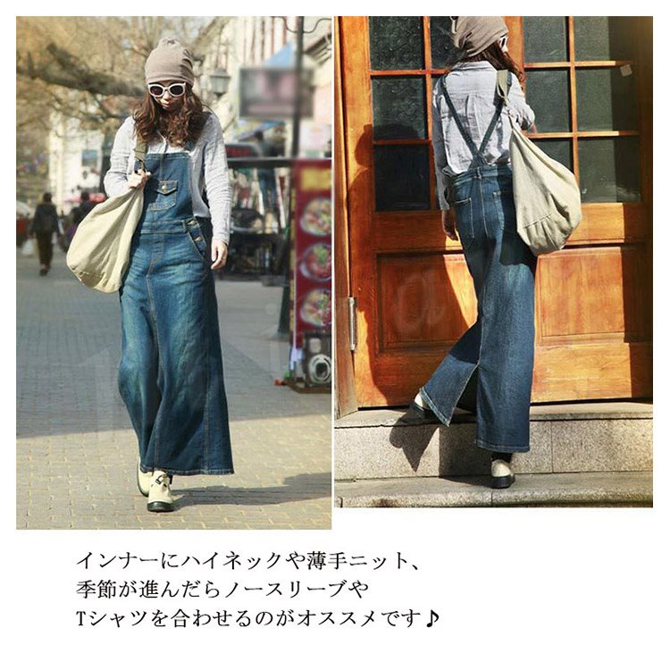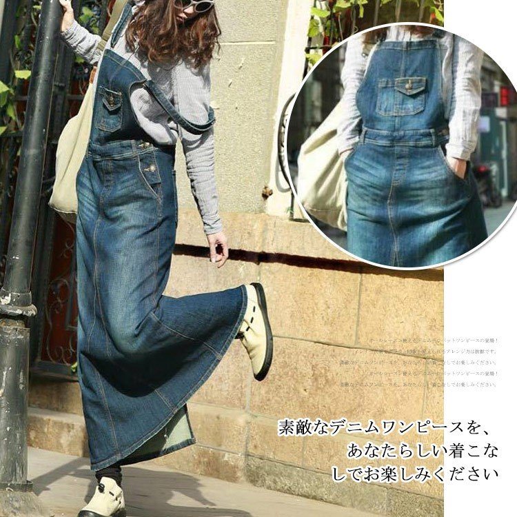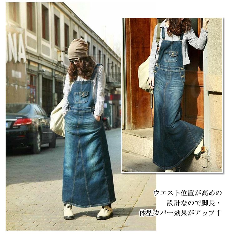 デニム サロペットワンピース サロペット オールインワン マキシ丈 デニム ワンピース デニムスカート ロング丈 サロペットスカート レディ